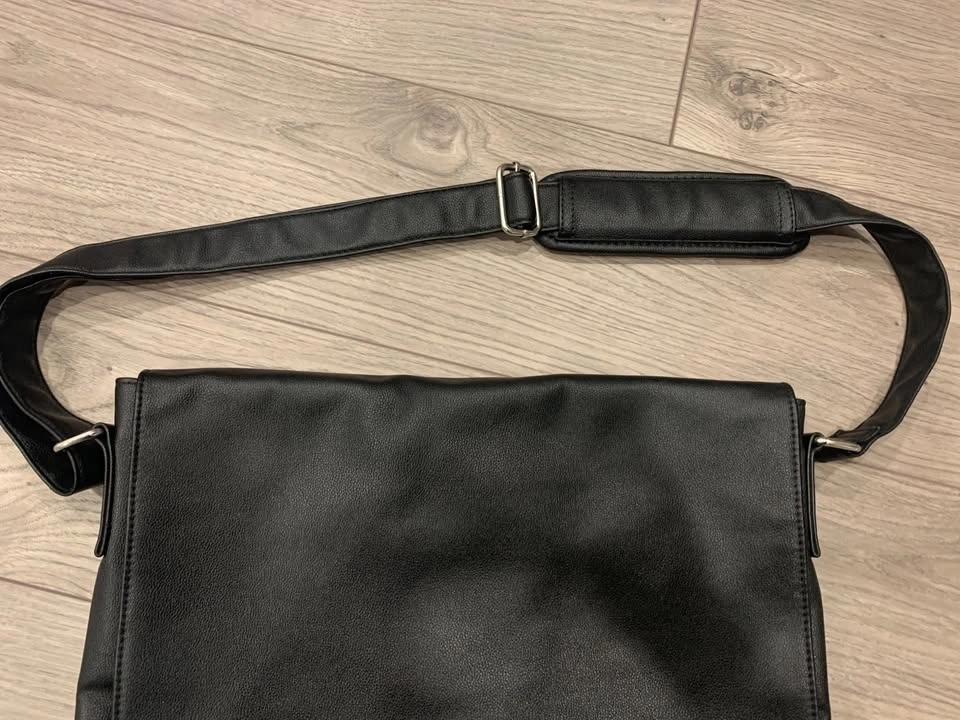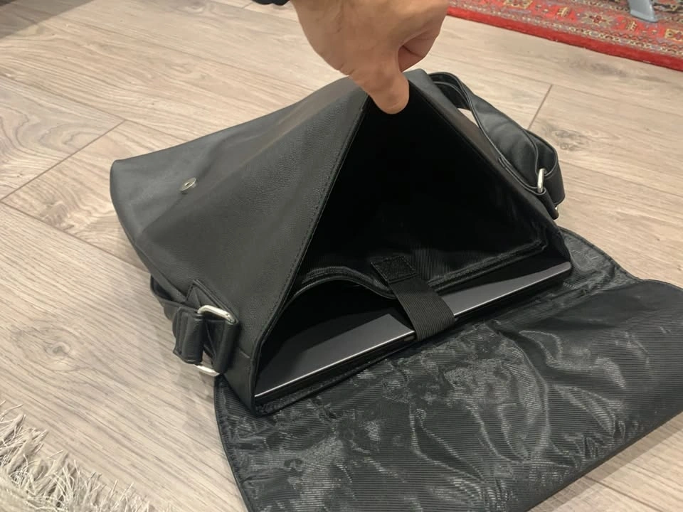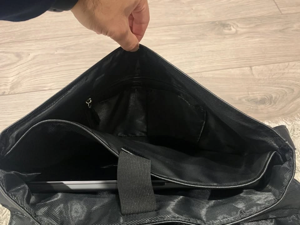 Had it for a year but only used it a couple times. I have a different bag now so I don’t need it. Outside is not made of real leather but it looks/feels a little bit like it. Inside is made of polyester fibres, very smooth material and won’t rip easily. Perfect for carrying your laptop, tablets, paper, and folders. Very lightweight, it barely weighs anything when it’s empty. You can see my 13” MacBook in the bag and how there’s so much more room left inside. Has a separate compartment for laptop with a velcro strap. Also has a zipper pocket inside the bag with space for pens and notepads. Shoulder strap is adjustable and has comfortable padding as well. Overall a great bag for school or work, or as a gift. Very professional and minimalist design with an attractive lowkey charm.