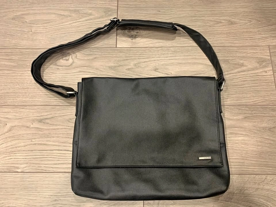 Had it for a year but only used it a couple times. I have a different bag now so I don’t need it. Outside is not made of real leather but it looks/feels a little bit like it. Inside is made of polyester fibres, very smooth material and won’t rip easily. Perfect for carrying your laptop, tablets, paper, and folders. Very lightweight, it barely weighs anything when it’s empty. You can see my 13” MacBook in the bag and how there’s so much more room left inside. Has a separate compartment for laptop with a velcro strap. Also has a zipper pocket inside the bag with space for pens and notepads. Shoulder strap is adjustable and has comfortable padding as well. Overall a great bag for school or work, or as a gift. Very professional and minimalist design with an attractive lowkey charm.