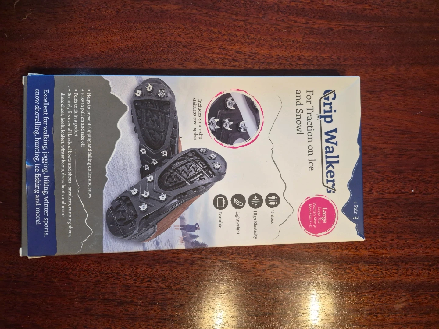 Grip Walkers for traction on ice and snow. Made with durable stainless steel spikes and high elasticity. They're unisex and portable, fitting over boots and shoes.