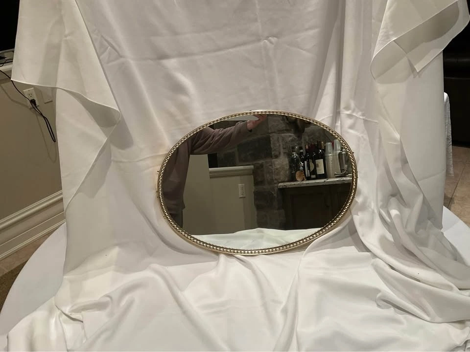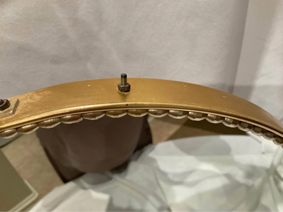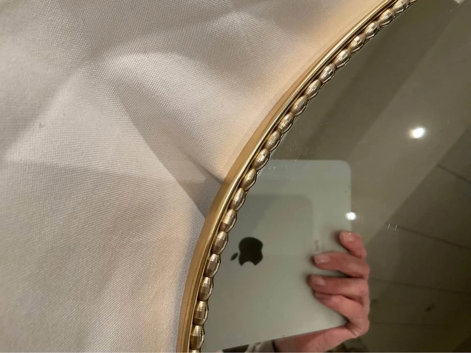 Beautiful Beaded Border Detail. This Mirror Frame is heavy and solid. Please see picture of screw coming out of frame; this can be removed from the back of the mirror. I think this was a part of a bedroom dresser set. #251/500. Smoke & Pet Free. Cash Only - Richmond Hill / Bathurst & King.
