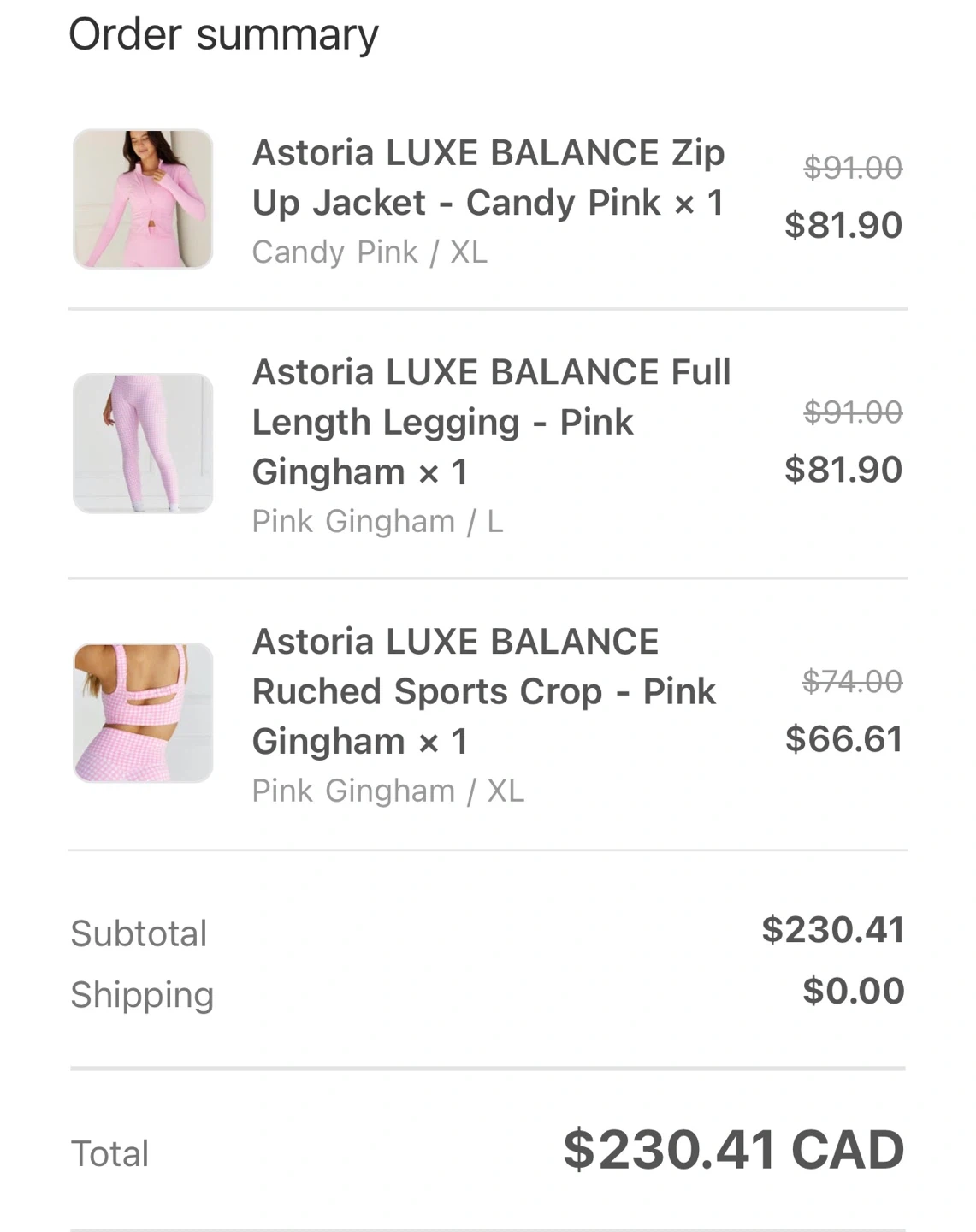 π Astoria Activewear Pink Gingham Set β BNWT π