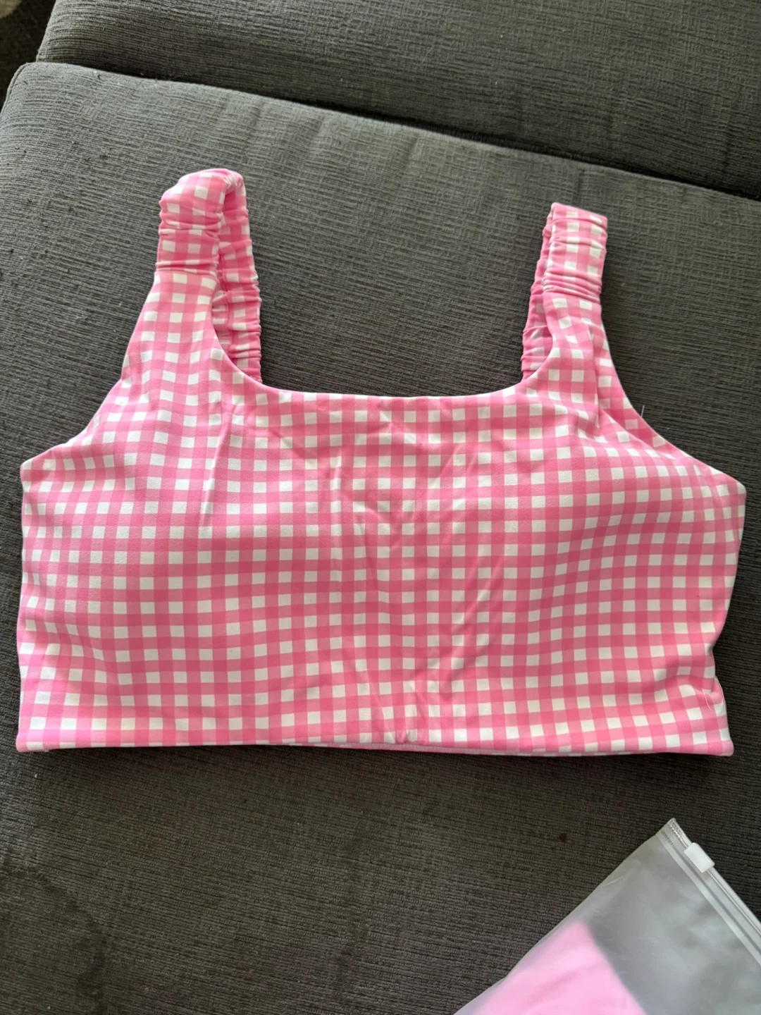 Viral and super cute Astoria Activewear set in the popular pink gingham print! Brand new with tags, never worn β selling only because it runs small on me.