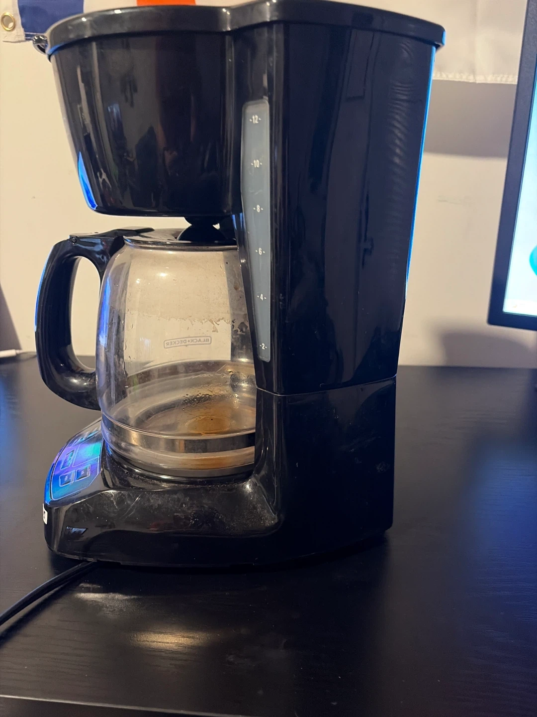 Black & Decker 12-cup drip coffee maker. Features a glass carafe and brew strength selector. It's easy to use for your morning coffee! Makes up to 12 cups.