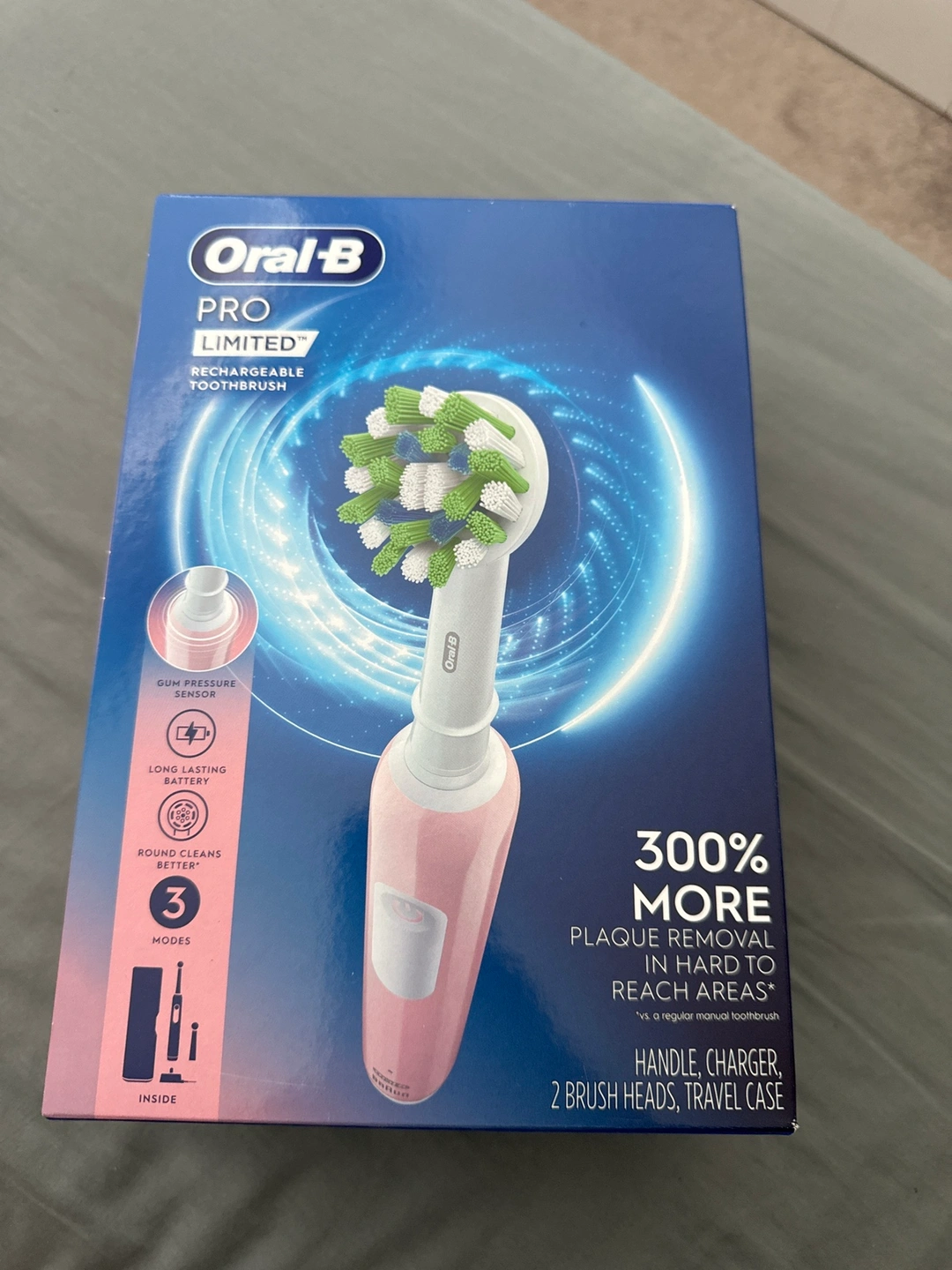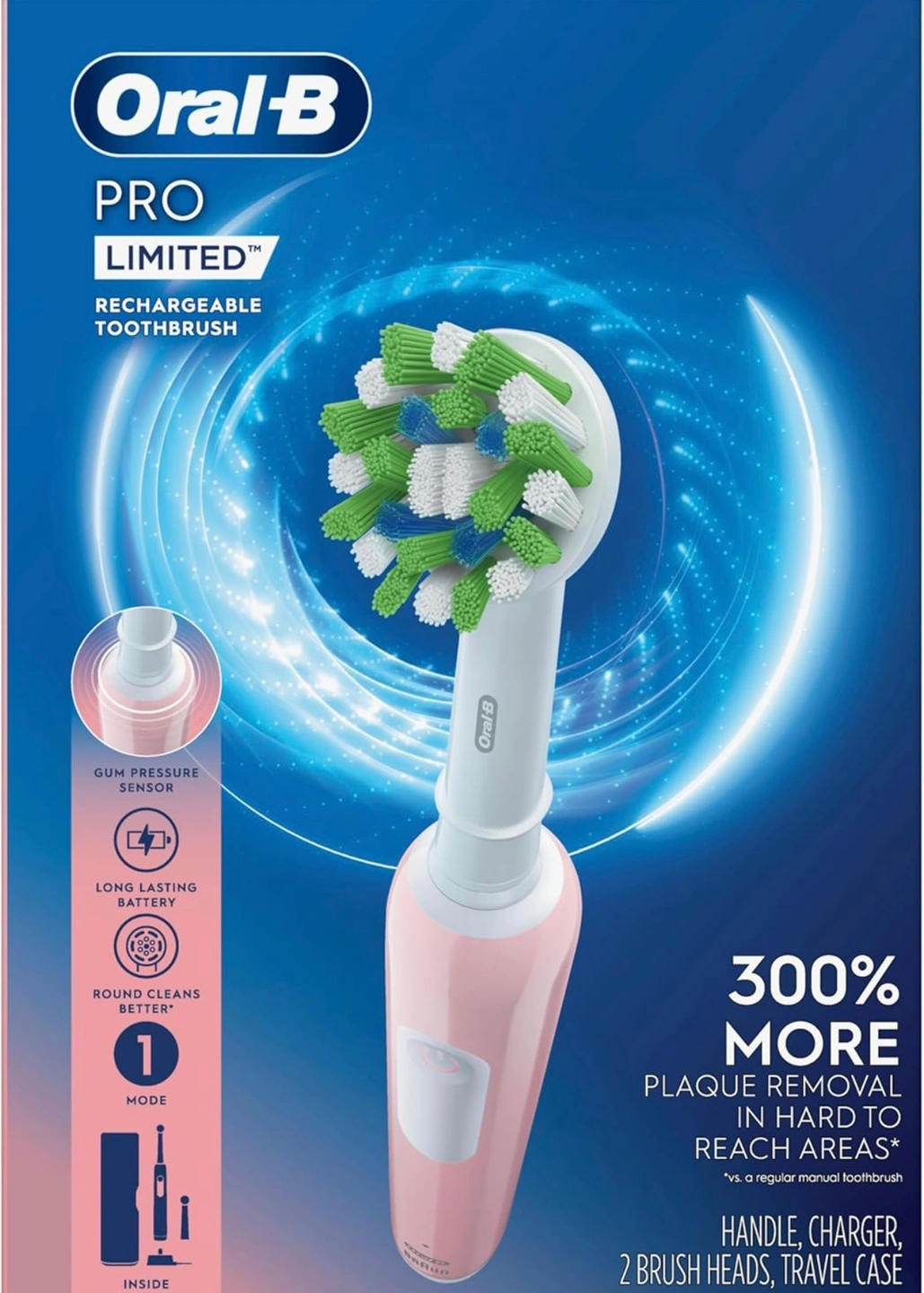 Oral-B Pro Limited Electric Toothbrush, Pink, Rechargeable Power Toothbrush with 2 Brush Heads and Travel Case