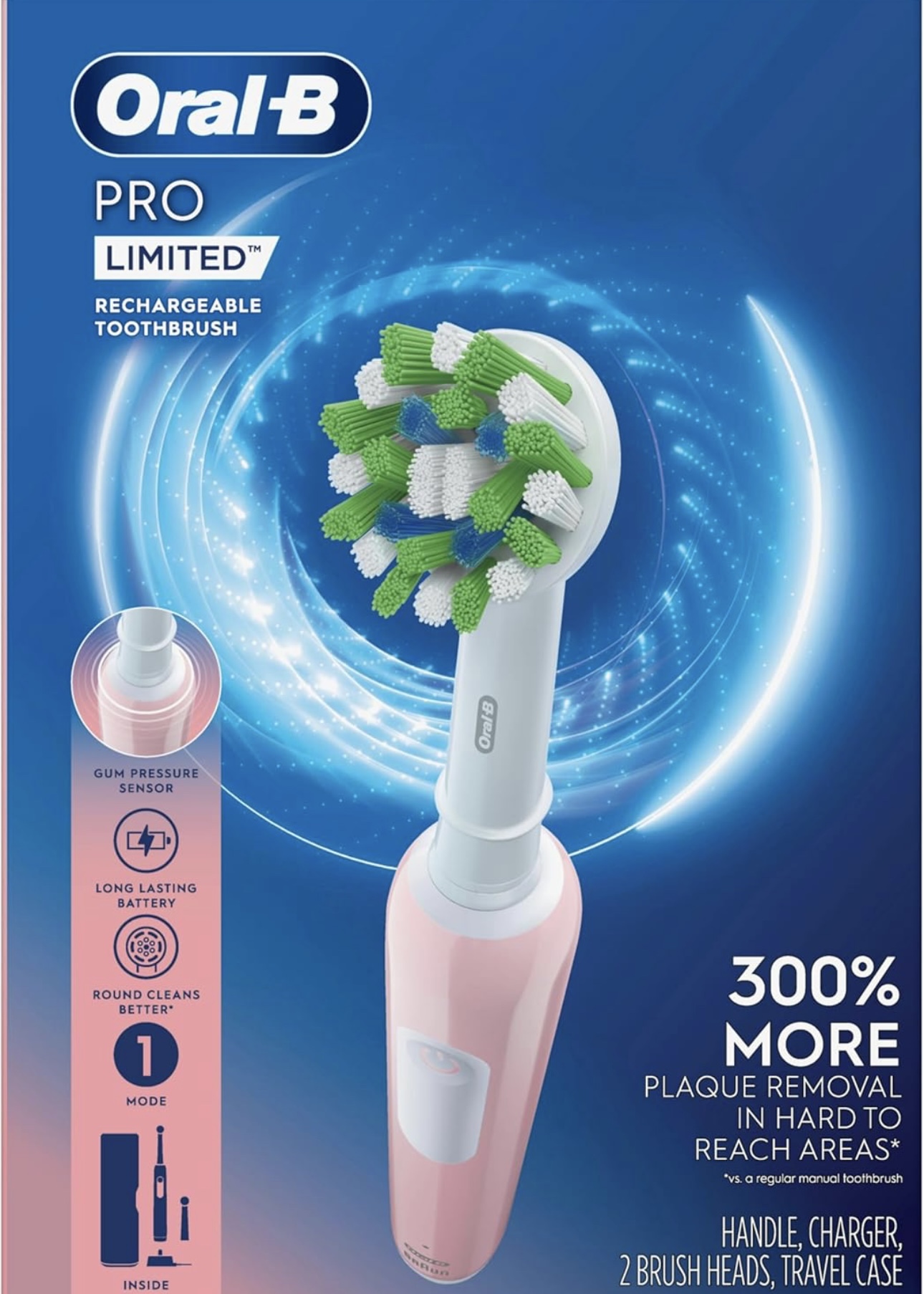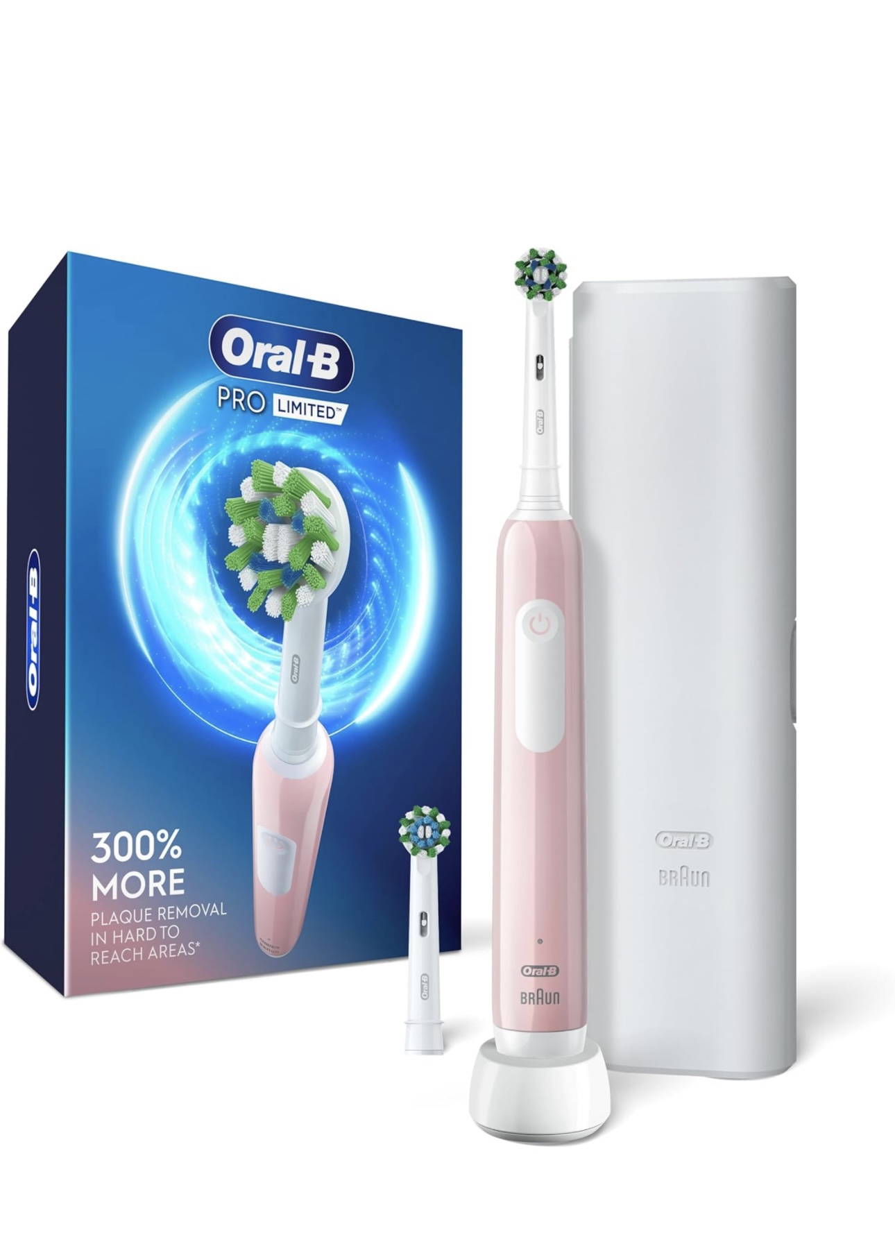 Oral-B Pro Limited Electric Toothbrush, Pink, Rechargeable Power Toothbrush with 2 Brush Heads and Travel Case