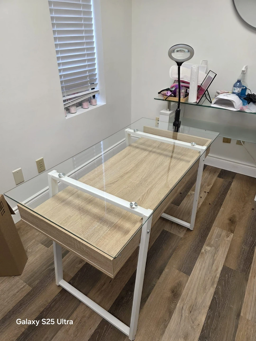 This desk has a clear glass