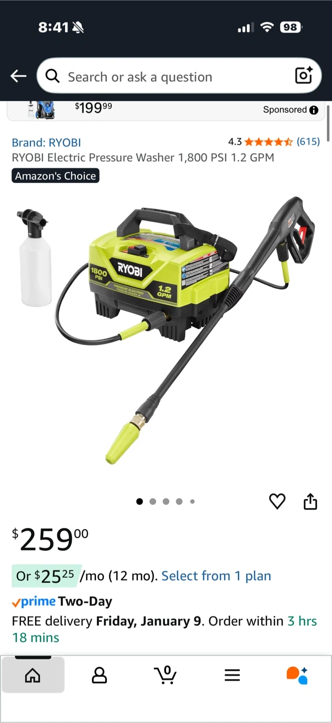 Selling a Ryobi electric pressure washer. It's in good working condition and ready to help you tackle those outdoor cleaning tasks. It delivers 1800 PSI and 1.2 GPM for effective cleaning. Great for patios, decks, and more!