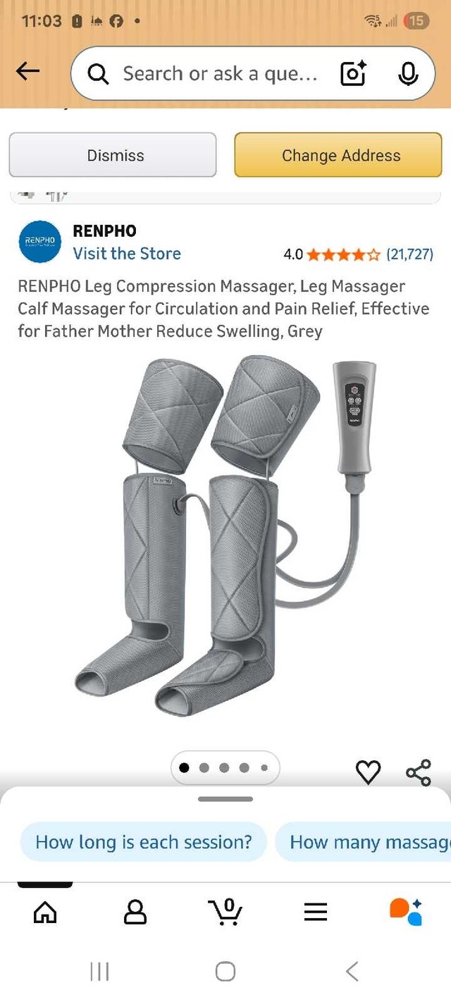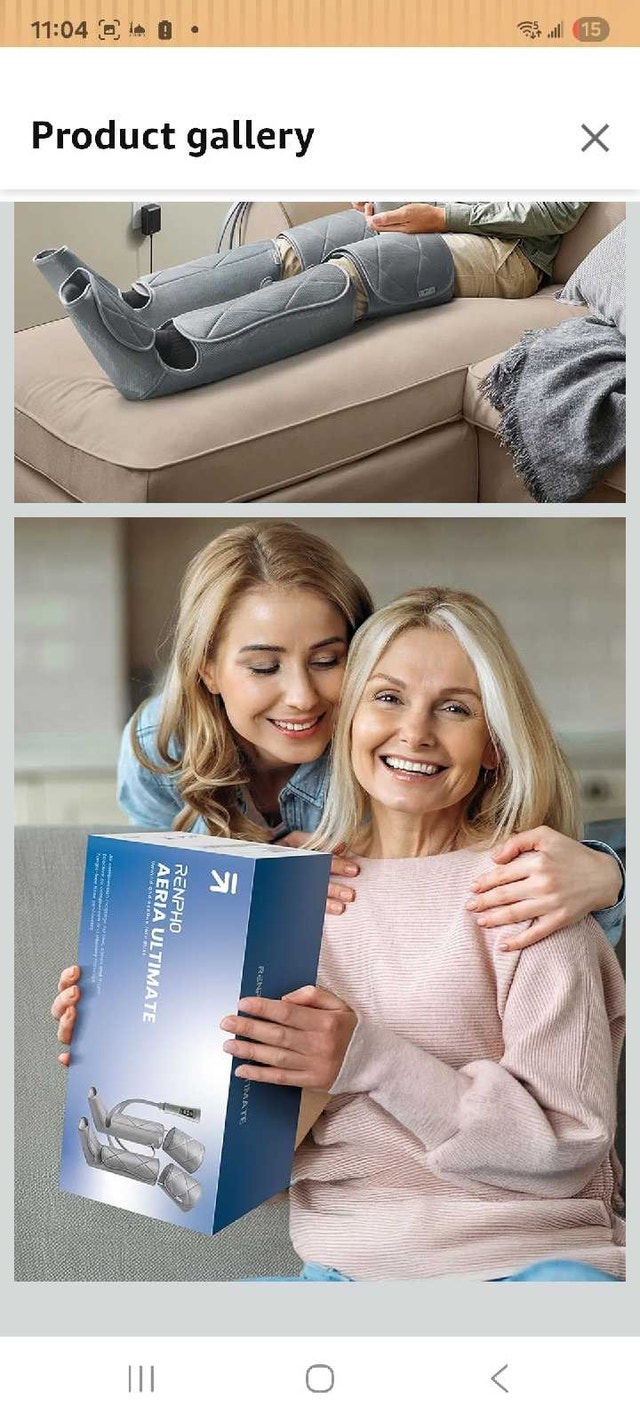 Selling a RENPHO leg massager with air compression for pain relief, fatigue, and improved circulation. This item is NEW and NEVER USED. It features adjustable wraps (fits calves up to 24.8 inches and thighs up to 33.5 inches), multiple massage modes, and adjustable intensity levels for a customized experience. Key features include a 20-minute timer, 3 combination modes, and 3-separation modes. If you're seeing this ad, it's still available! Treat your legs to some well-deserved relaxation.