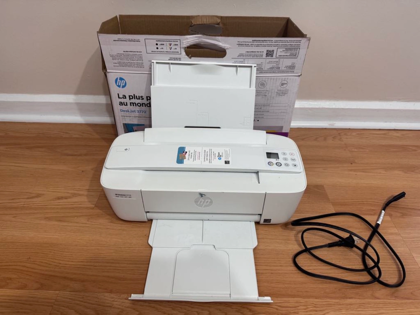 Selling an HP DeskJet 3772 all-in-one printer! It comes with its original box and power cable. Great for home or office use.
