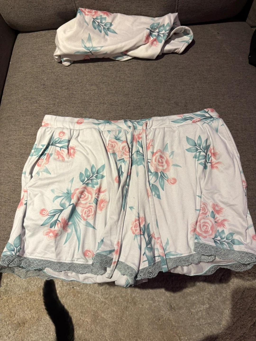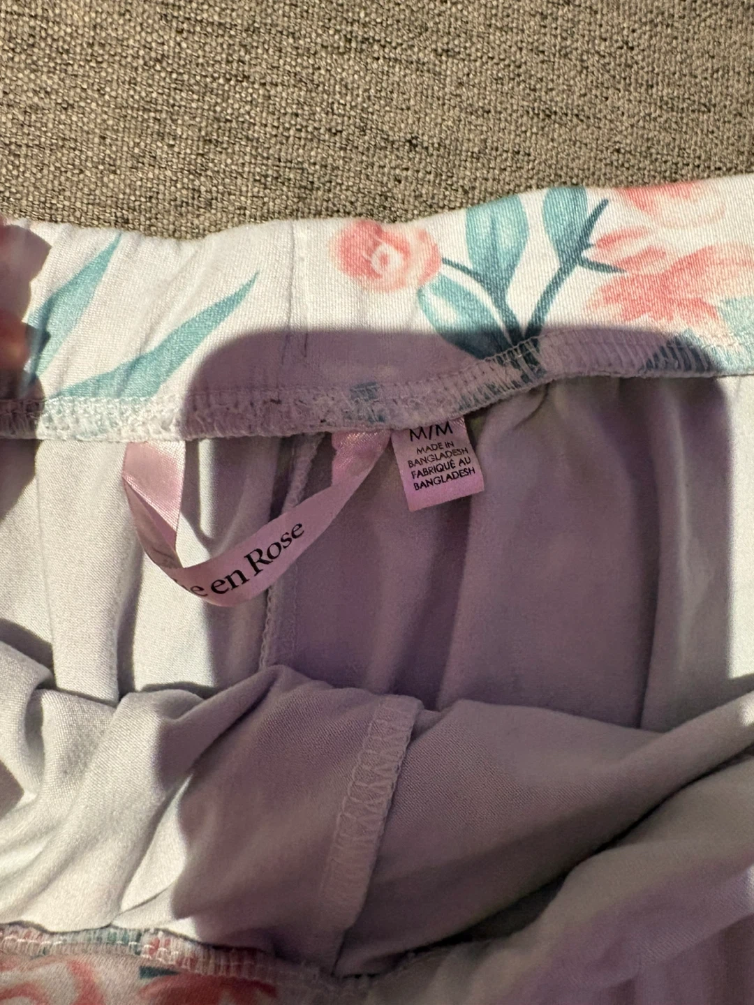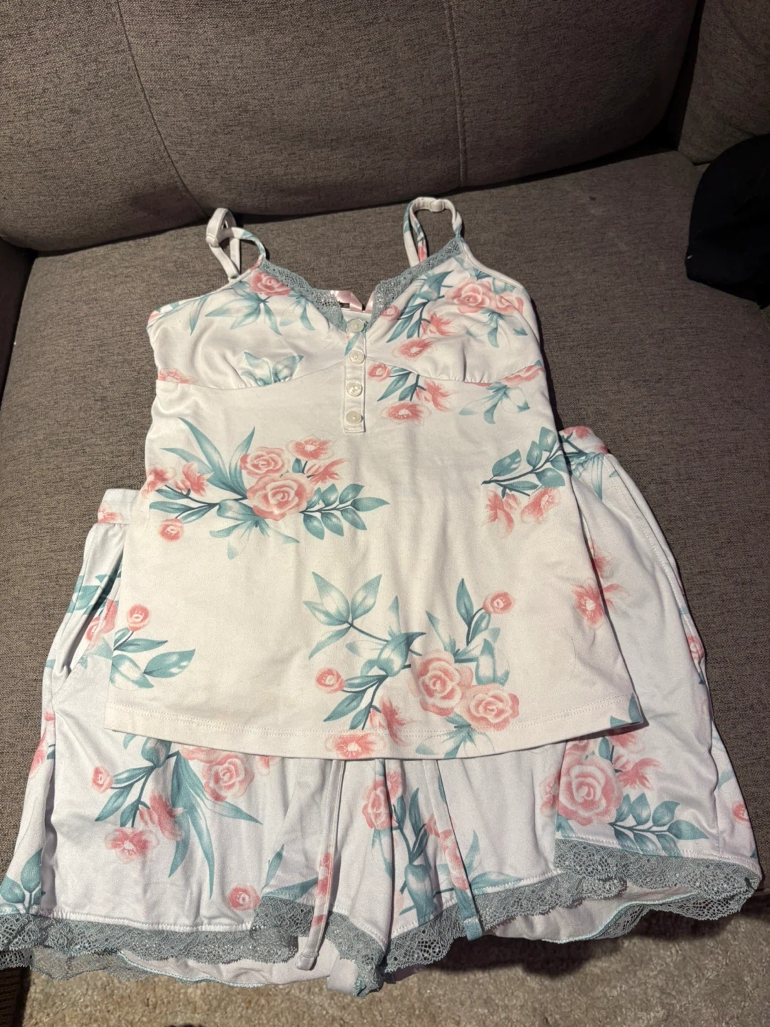 Selling a cute pajama set from La Vie en Rose! The set features a floral pattern with roses and leaves. The size is XS.