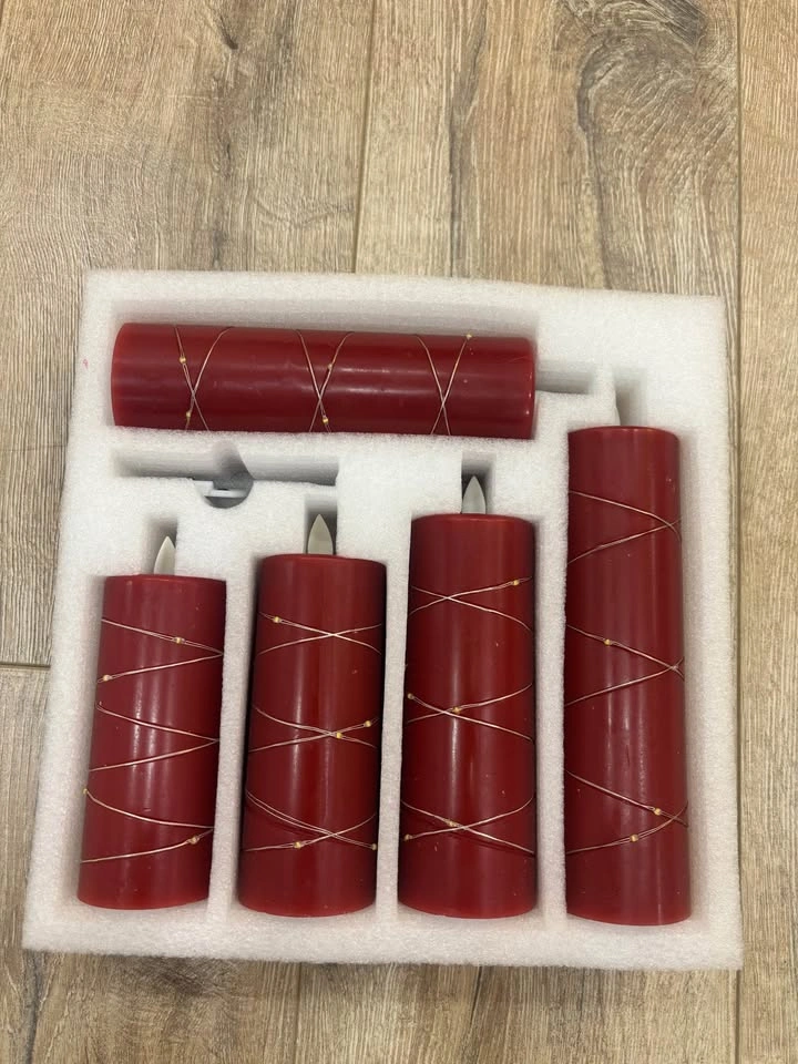 Selling a beautiful 5-pack set of red Flameless LED Candles, wrapped with elegant fairy string lights. This set is brand new and in perfect condition. Makes an excellent gift for housewarmings, anniversaries, or any special occasion.