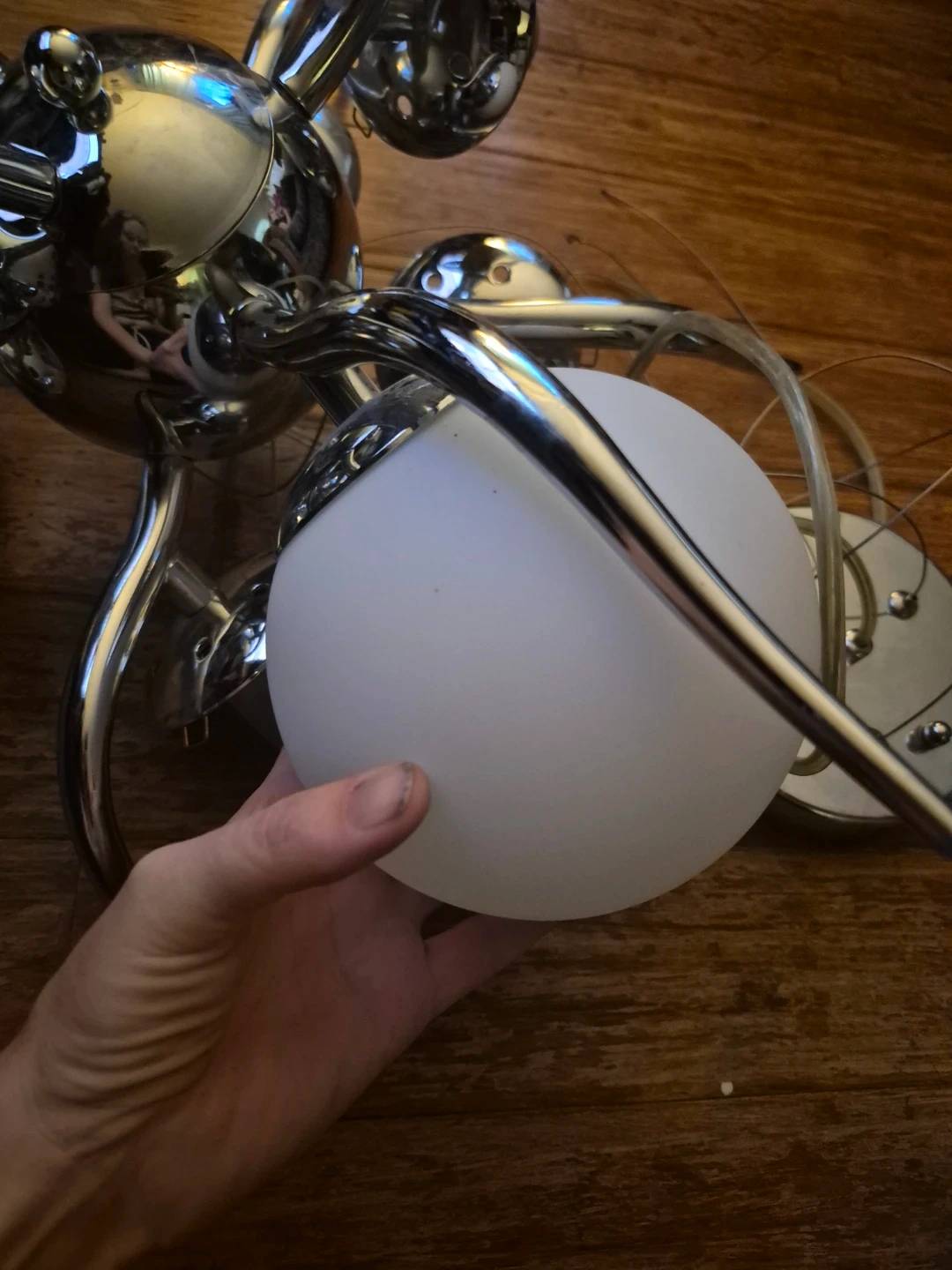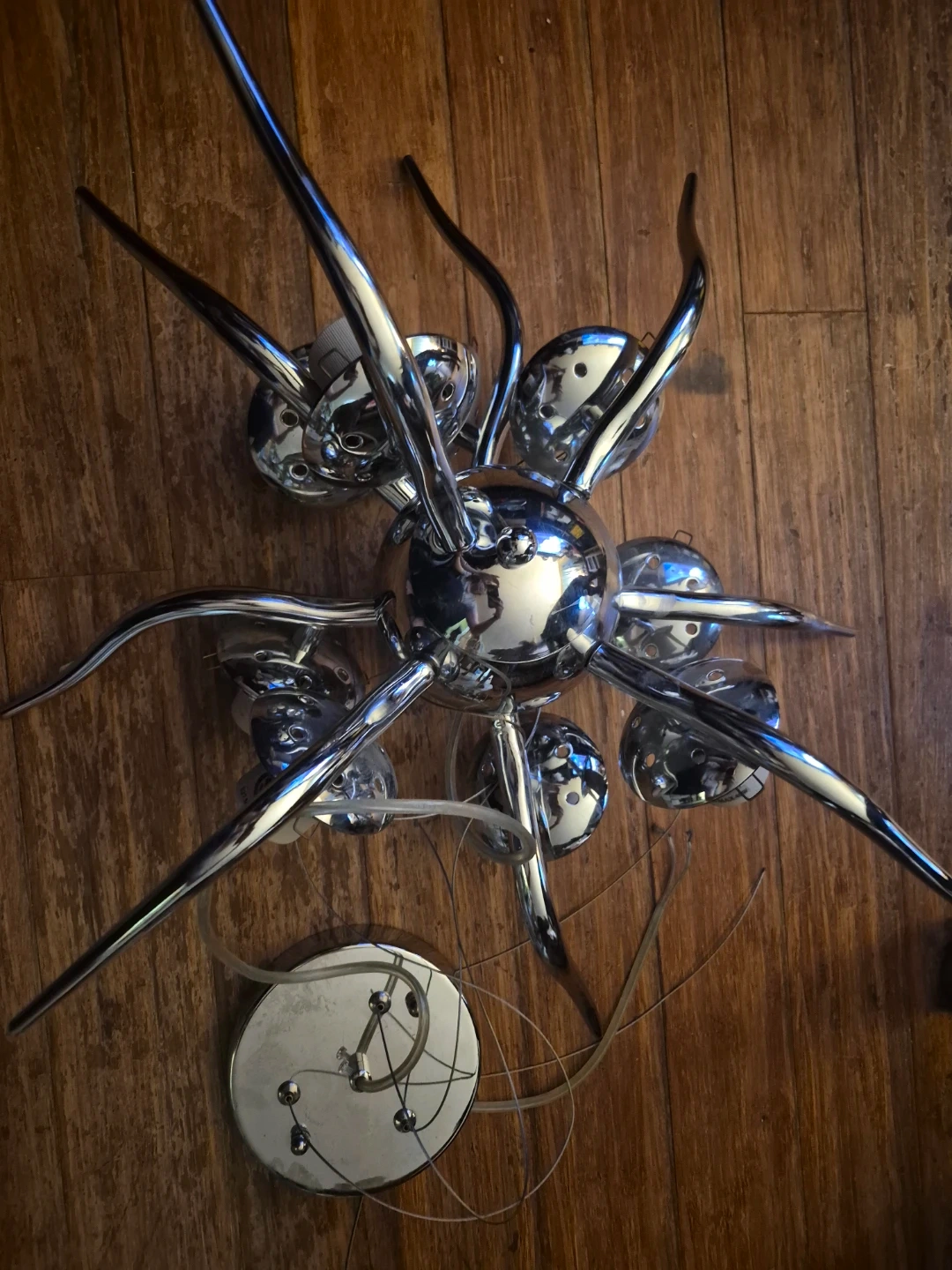 Buy & SellChrome Sputnik Chandelier Pendant Light FixtureChrome Sputnik Chandelier Pendant Light Fixture$60Cool chrome sputnik-style chandelier with multiple light sockets. Includes frosted glass globe shade. Some boxes appear to be for multiple units.ConditionLike newWHERE TO MEET1478 queen st westView MapSELLERverifiedkandaceCredit Valley28219 reviews0 chats·0 favorites·2 viewsSEND CHAT TO SELLERHi kandace! I’m interested in your listing.Hi kandace! I’m interested in your listing.Get the Karrot app to chatSign In to chat