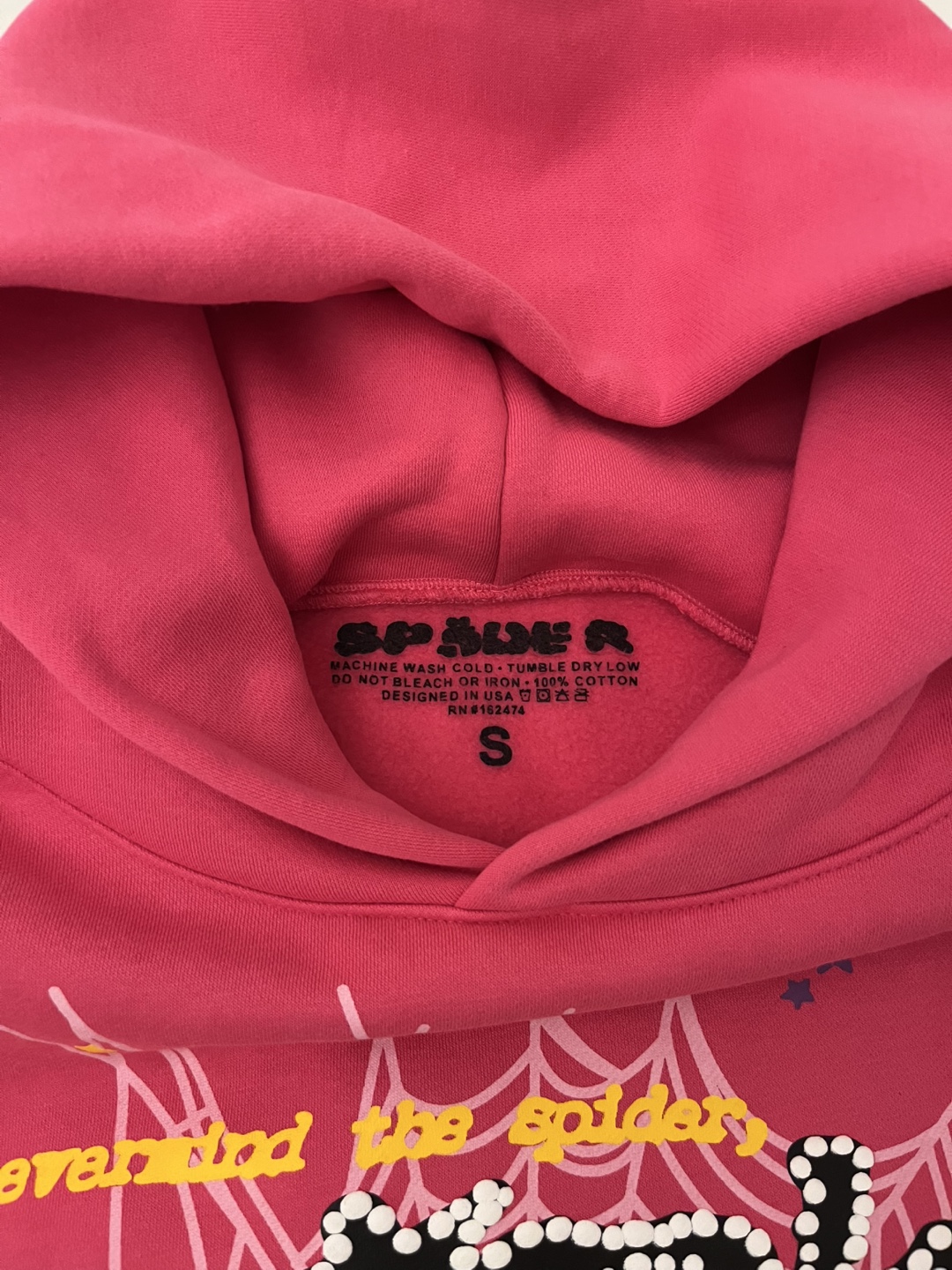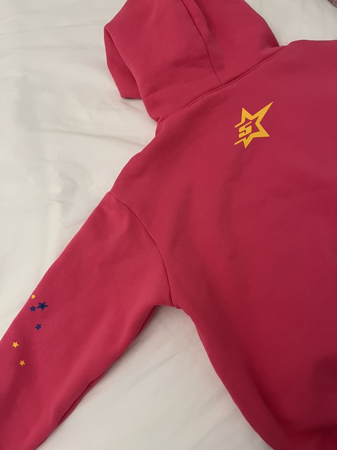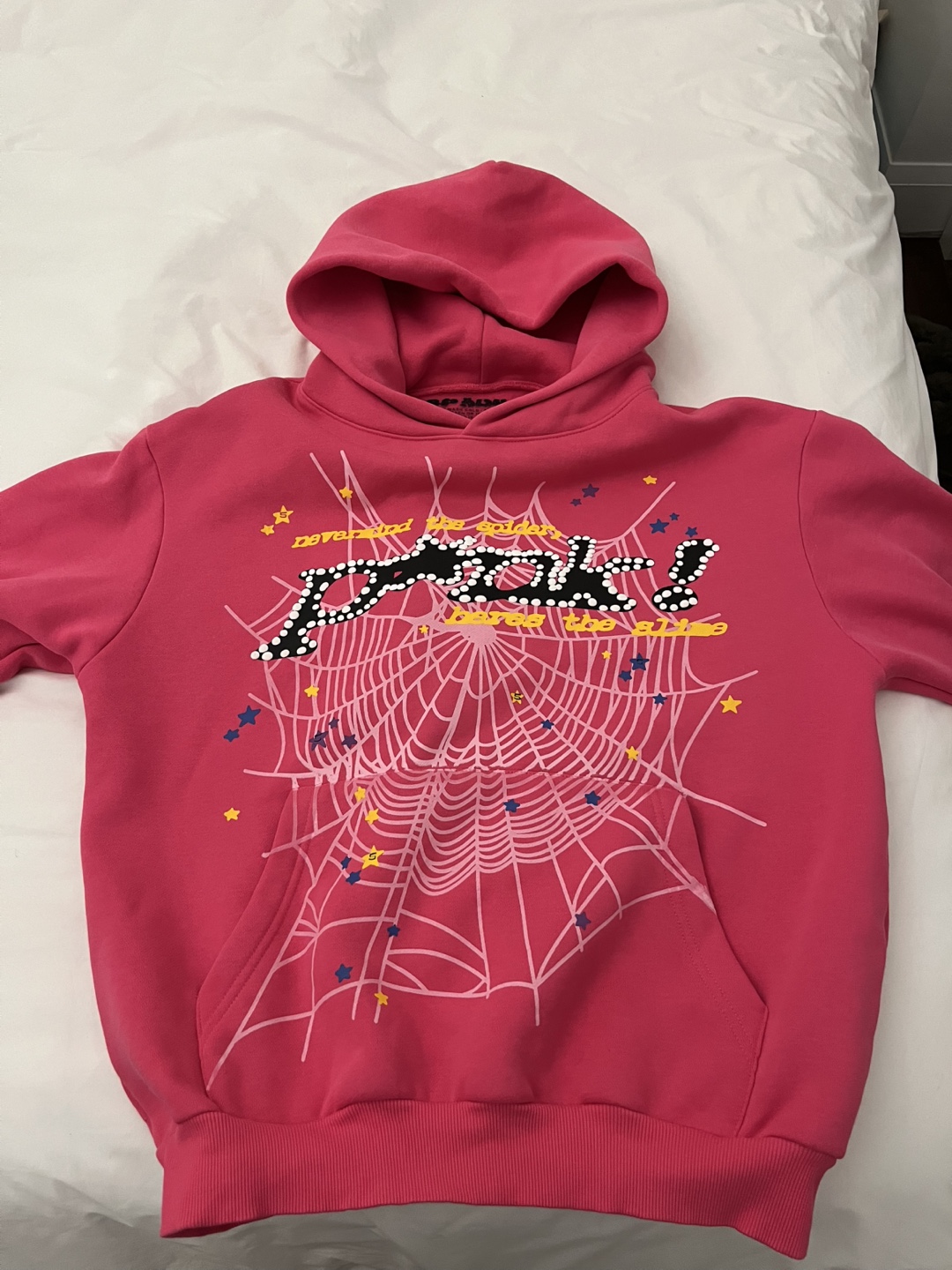Selling a SP5DER hoodie in pink! It's a size small. In pristine condition (only worn once).