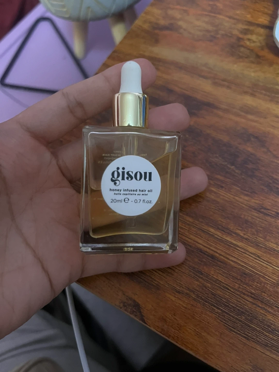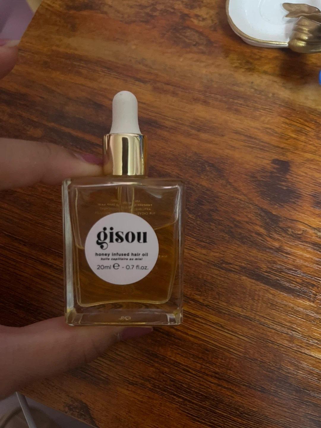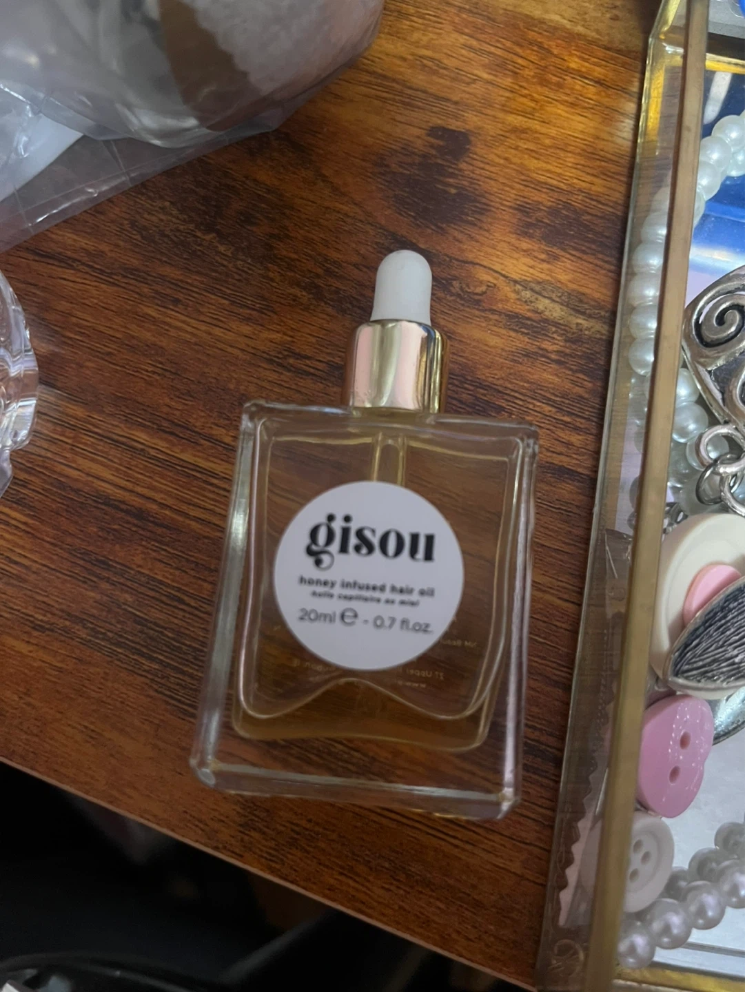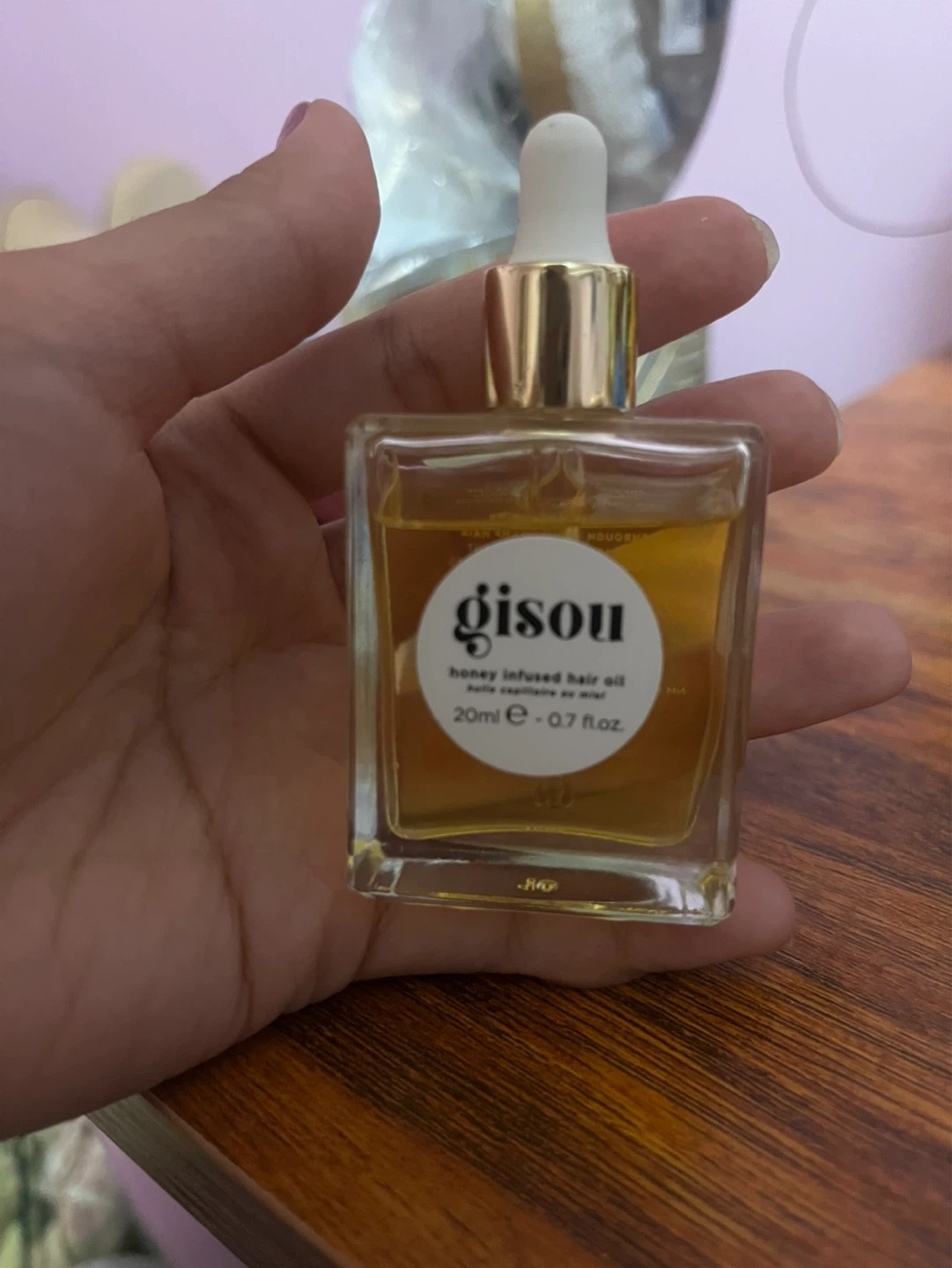 Gisou honey infused hair oil. It's a 20ml bottle, perfect for travel or trying out the product. This oil is made with natural ingredients.