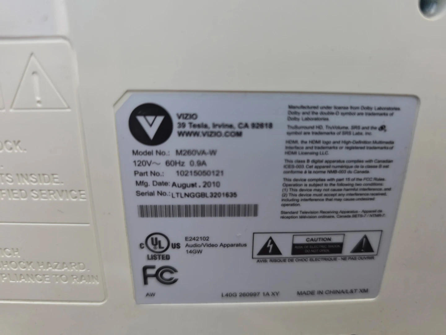 Buy & SellVizio M260VA-W 26" LCD TVVizio M260VA-W 26" LCD TV$24This is a Vizio 26-inch LCD TV, model M260VA-W. It was manufactured in August 2010. The TV has HDMI, SPDIF, Audio, RGB PC, and DTV/TV inputs.ConditionLike newBrandVizioWHERE TO MEETnear Sutphin CenterView MapSELLERverified428552Jamaica873 reviews1 chats·0 favorites·17 viewsSEND CHAT TO SELLERHi 428552! I’m interested in your listing.Hi 428552! I’m interested in your listing.Get the Karrot app to chatSign In to chat