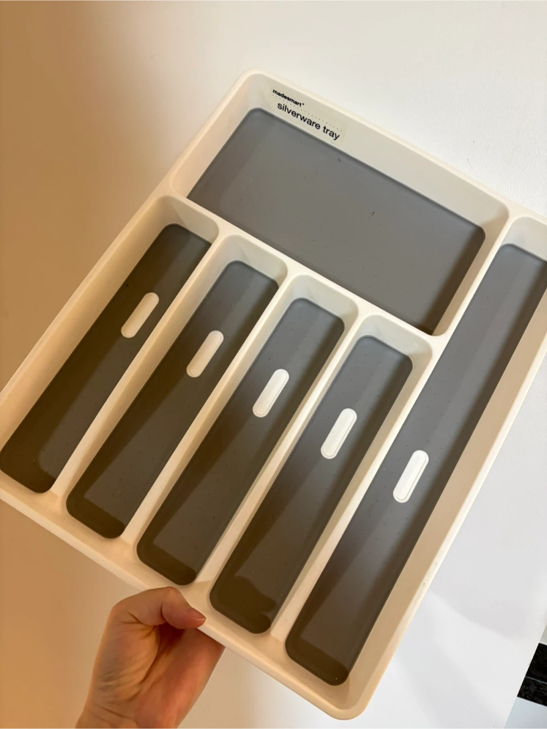 This MadeSmart silverware tray helps keep your kitchen drawers tidy. It features six compartments for organizing cutlery and utensils. Made of durable plastic.