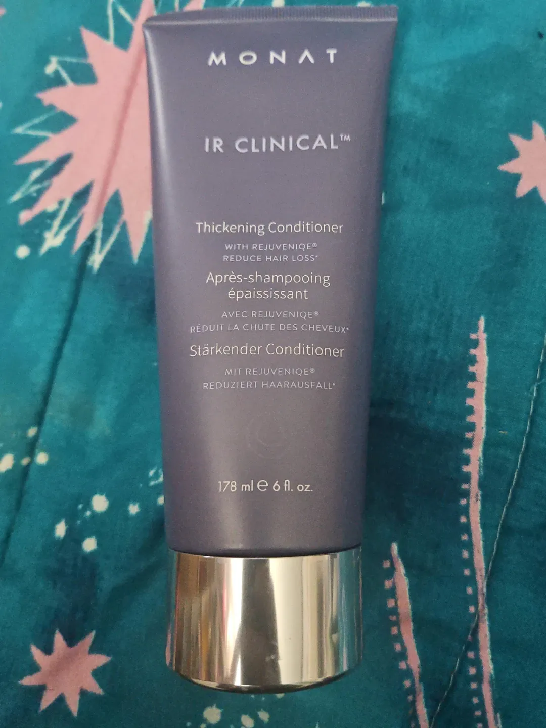 MONAT IR Clinical Thickening Conditioner with REJUVENIQE® to reduce hair loss. 178 ml bottle. This conditioner is designed for thickening hair.