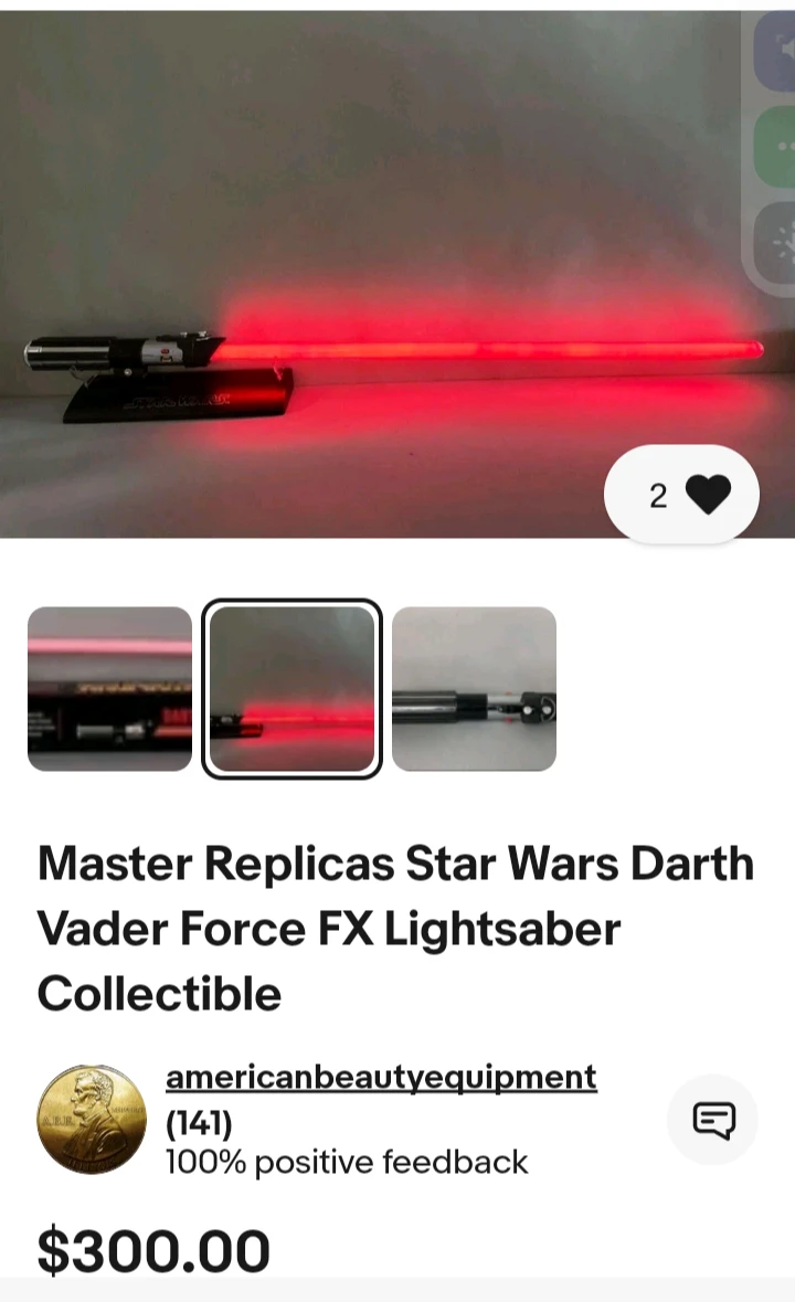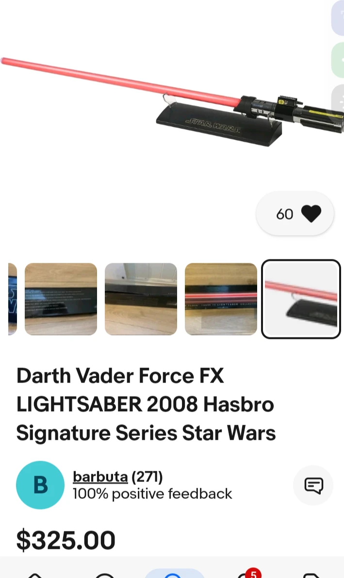 Selling a Darth Vader Force FX Lightsaber. Based on the images, it looks to be from the Signature Series. A similar one was listed online for $325. Feel free to reach out if you're interested!
