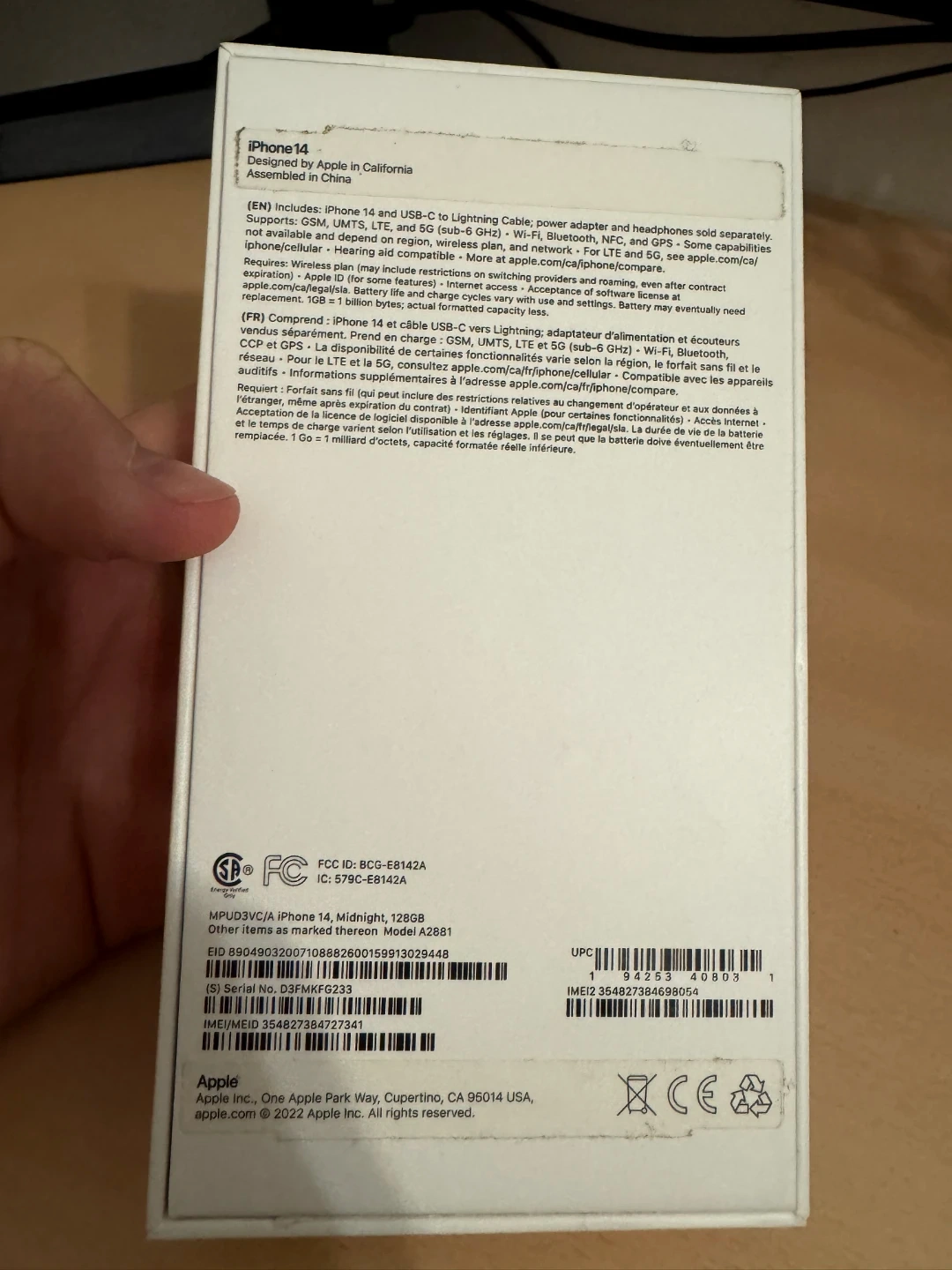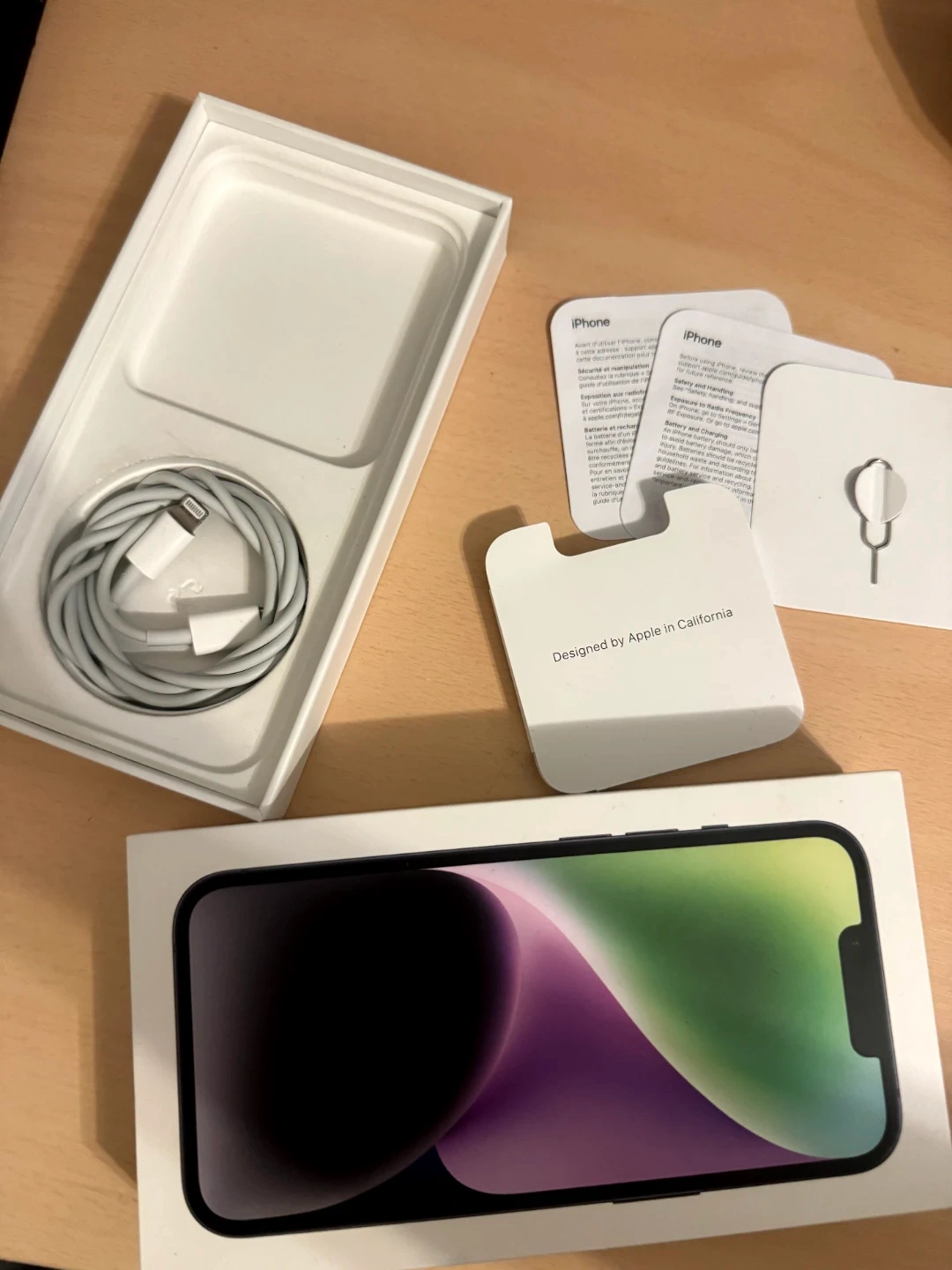 iPhone 14 128GB Unlocked - Midnight Black + Box & Apple Case