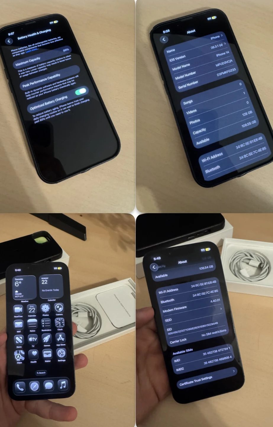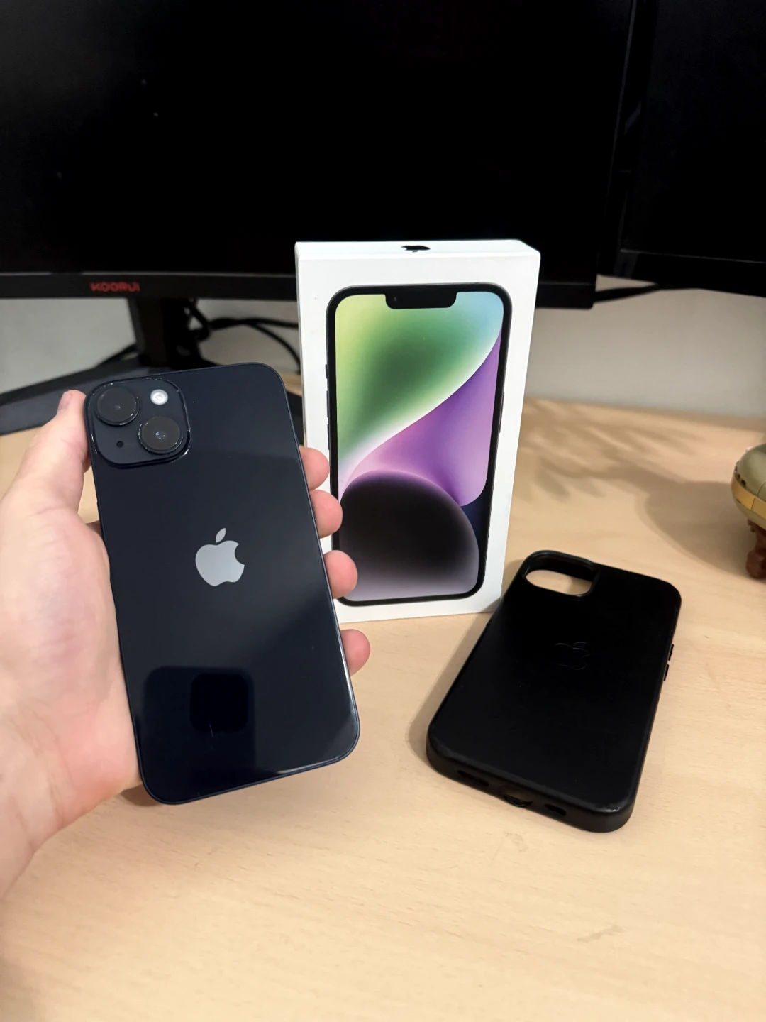 iPhone 14 128GB Unlocked - Midnight Black + Box & Apple Case