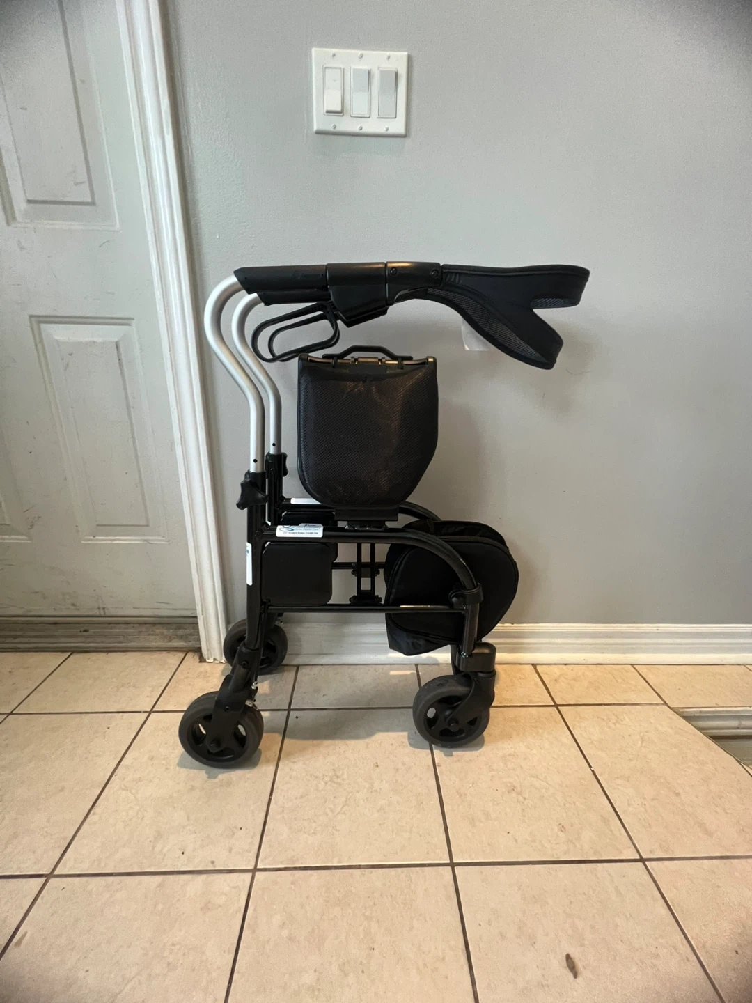 This Medline mobility walker features a comfortable seat and a large storage basket. It's designed for stability and ease of use. Includes hand brakes for safety. It's perfect for individuals needing mobility assistance indoors or outdoors.