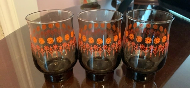 Vintage Dominion Glass Smoky Tulip Glasses, 4.25”H. Set of 3. Used - Like new.