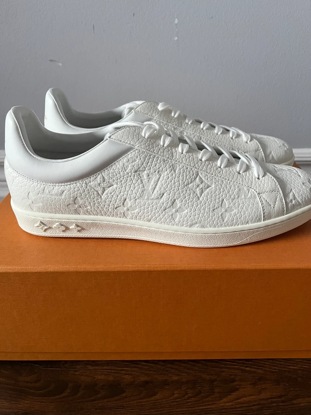 Brand new, never worn Louis Vuitton white Monogram-embossed leather sneakers