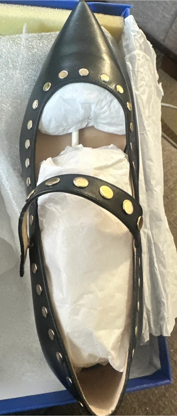 Brand New Stuart Weitzman Gala Stud Maryja Leather Flat Size: 40
