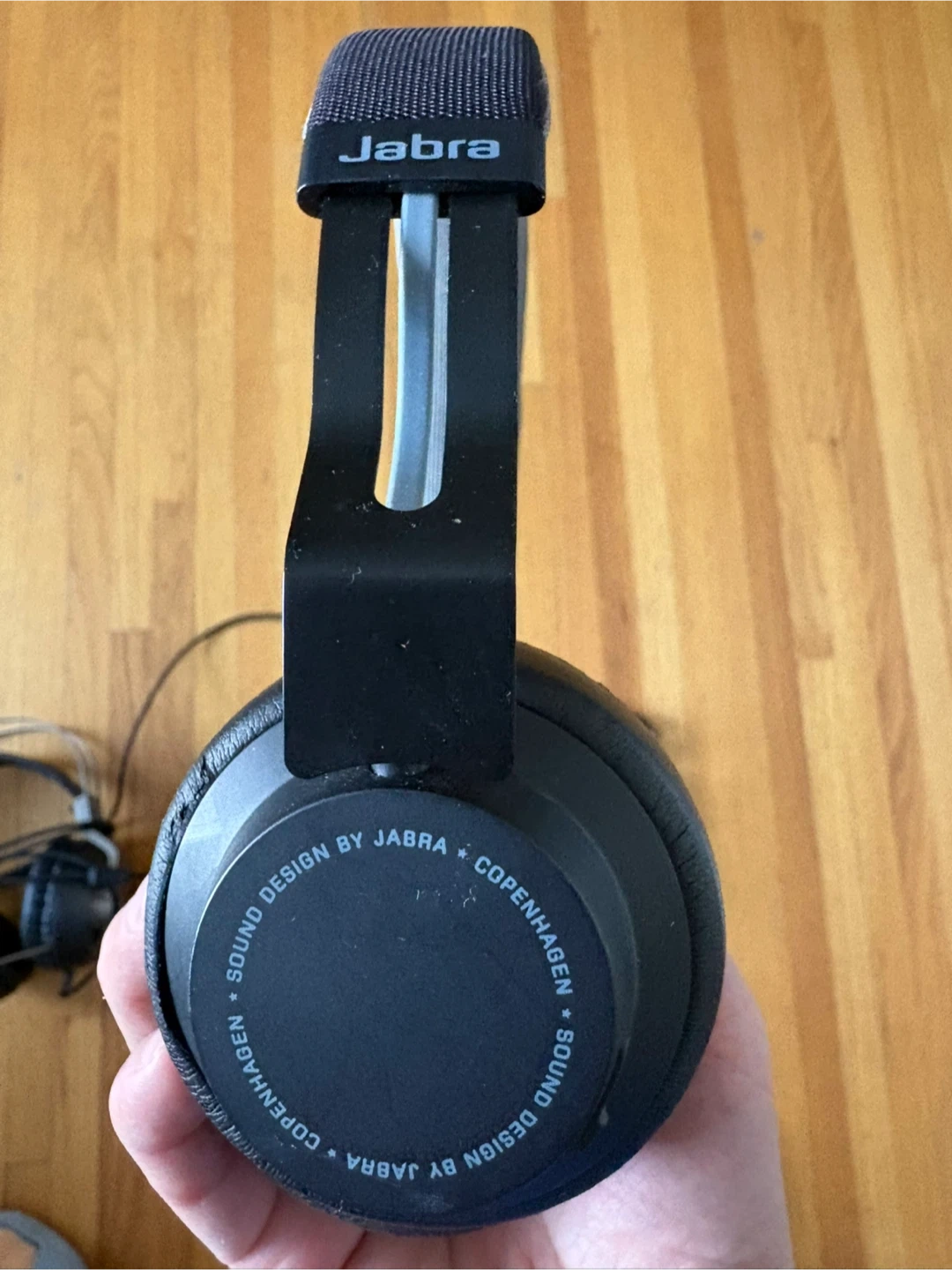 Selling a pair of Jabra BH209A headphones with a built-in microphone. They feature sound design by Jabra from Copenhagen. Includes USB adapter.