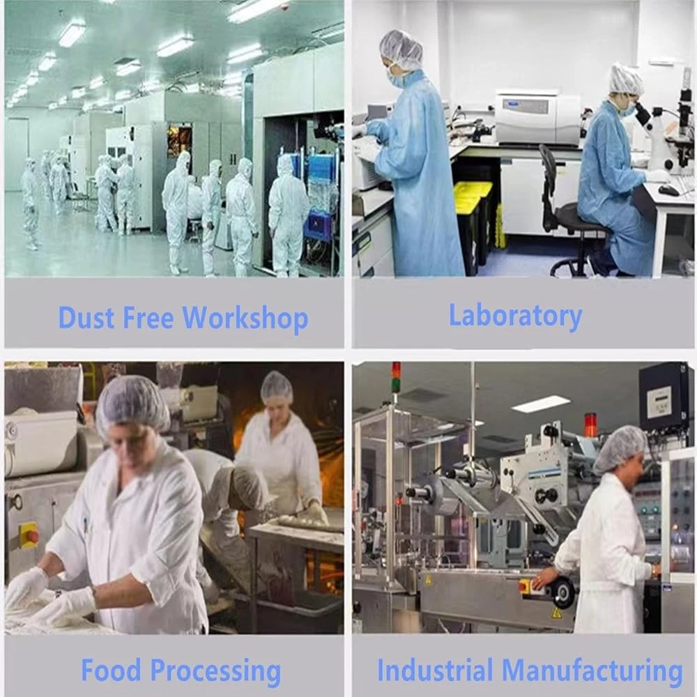 These hair nets are designed for cleanliness in various environments. They're made from a lightweight, non-woven material for comfort. Suitable for dust-free workshops, laboratories, food processing, and industrial manufacturing. One size fits all.