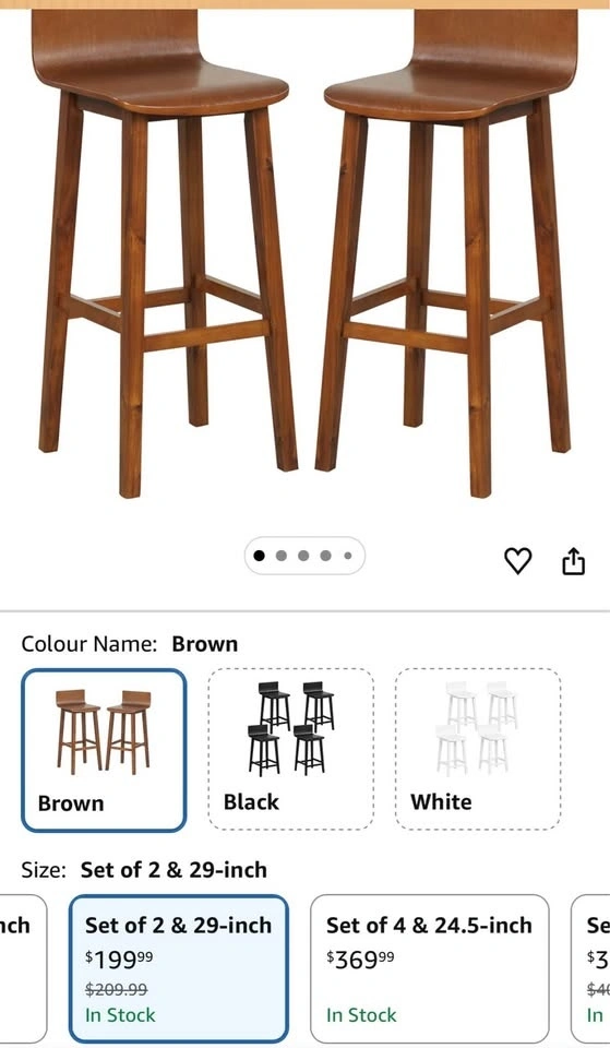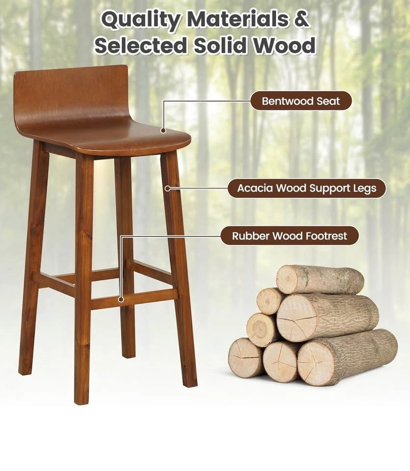 COSTWAY Solid Wood Bar Stools, 29-inch Counter Height Chairs with Low Back and Footrest. Farmhouse style, armless wooden barstools, great for kitchen islands, dining rooms, cafes, or breakfast nooks. Brown color.