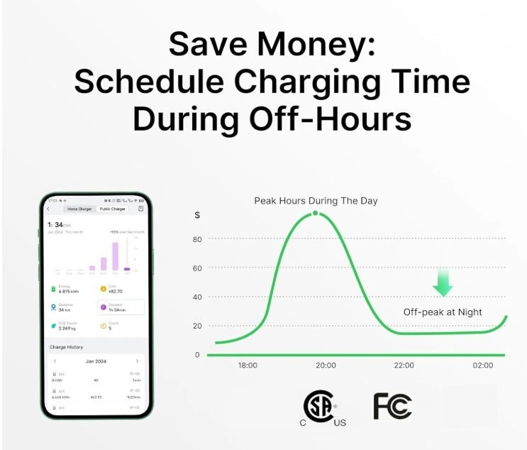 Autel Maxi Charger AC Home, developed by a team of designers and engineers. Offers up to 50A charging, adding about 37 miles per charging hour. Includes a durable 25-foot cable. CSA Certified & NEMA Type 4 rated for all-weather protection (snow, rain, hail, sleet). Suitable for indoor or outdoor use. Features fire resistance, over current, over voltage, and over temperature protection. Control your charger with the Autel Charge APP to manage charge times, schedule charging, and optimize for off-peak electricity. Bluetooth, Wi-Fi, and Ethernet enabled for automatic over-the-air firmware updates. Comes with a 3-year warranty and 24/7 support. Easy for an electrician to install.