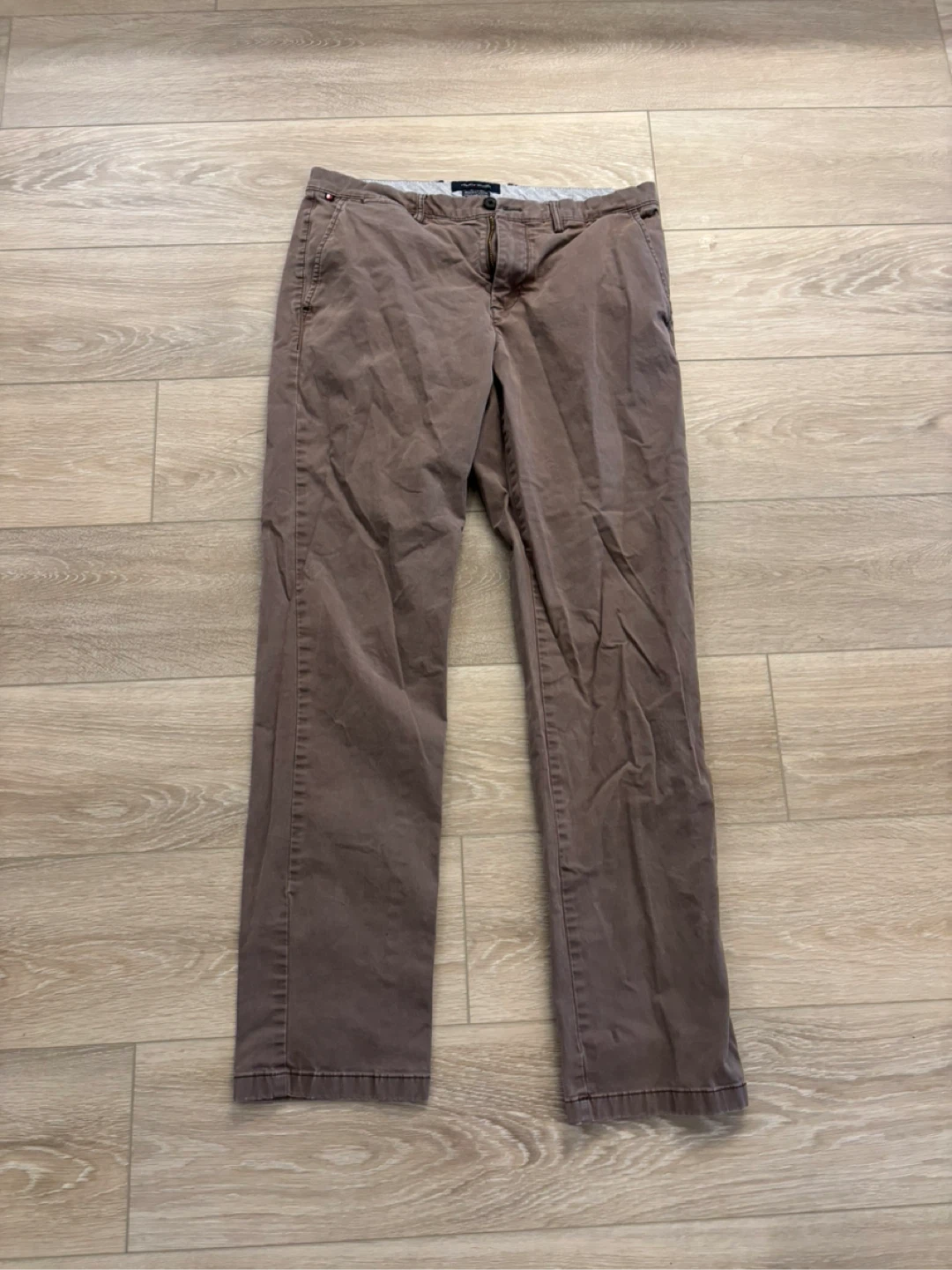 Tommy Hilfiger men's chinos in a light grey colourway. These pants are a size 32x34. They're made from a comfortable cotton blend.