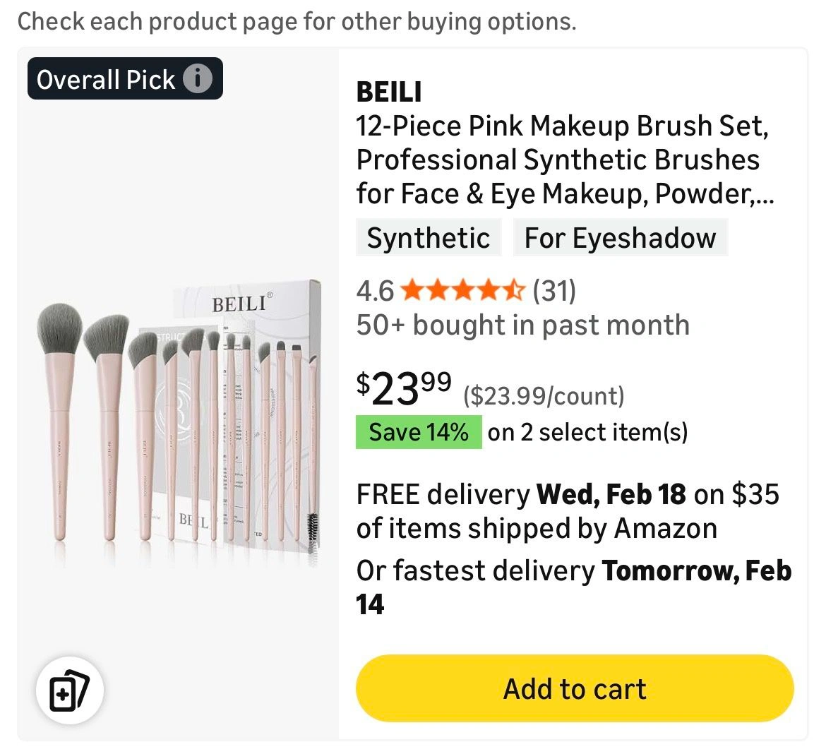 1 / 51 / 5Buy & SellBEILI 12-Piece Pink Makeup Brush SetBEILI 12-Piece Pink Makeup Brush Set$20Professional synthetic brushes for face & eye makeup, including powder, concealer, blending, contour, and eyeliner. Elegant and gift-ready.WHERE TO MEETCheck LocationView MapSELLERverifiedNayelleWestmont670 reviews0 chats·0 favorites·2 viewsSEND CHAT TO SELLERHi Nayelle! I’m interested in your listing.Hi Nayelle! I’m interested in your listing.Get the Karrot app to chatSign In to chat