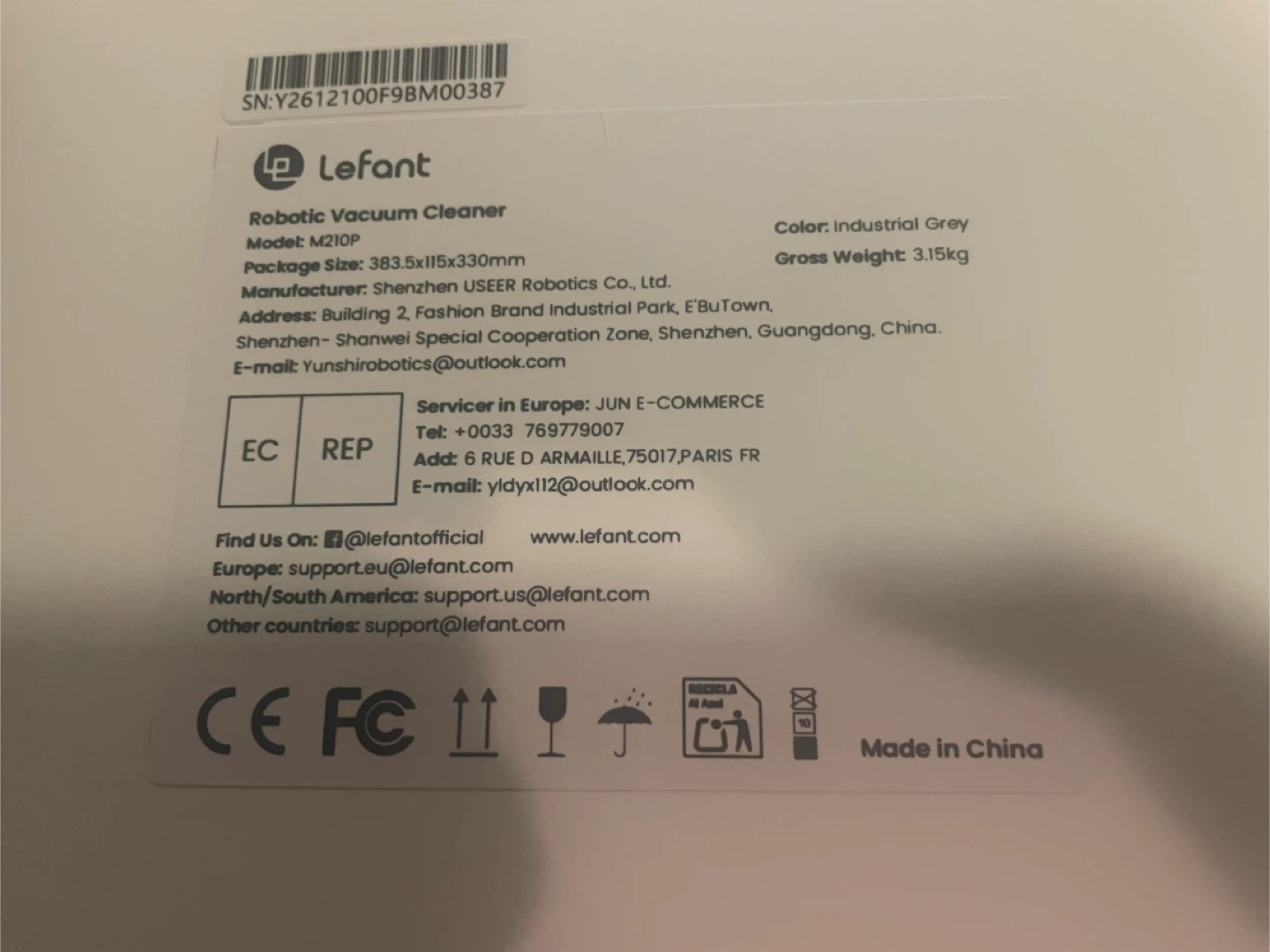 Won at a Christmas raffle - cannot use it due to pets. Lefant Freemotion 3.0 Robotic Vacuum Cleaner, model M210P. This robotic vacuum is 280mm in diameter and 80mm in height. It has a 500ml dustbin capacity. It's controlled via a smartphone app.