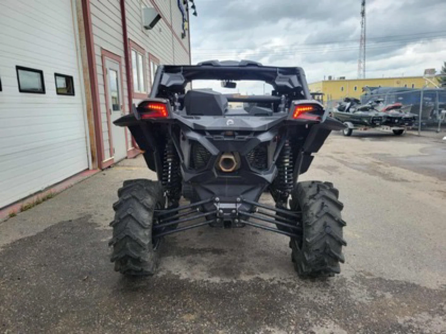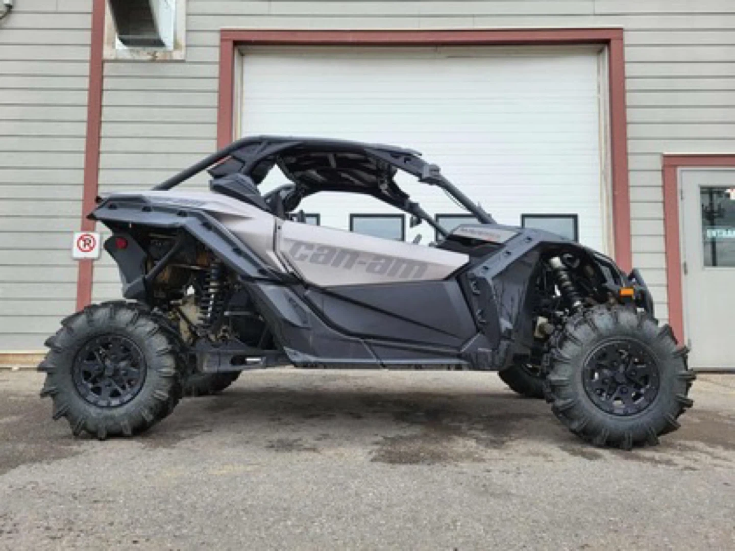 This is a Can-Am Maverick X3 side-by-side vehicle. It's equipped with large off-road tires. Features a rugged design suitable for challenging terrain. Perfect for off-roading adventures!