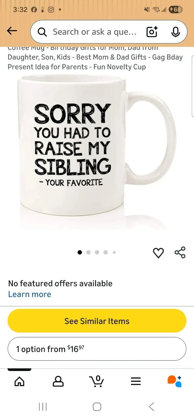 Funny ceramic coffee mug with the text "SORRY YOU HAD TO RAISE MY SIBLING - YOUR FAVORITE". It's dishwasher and microwave safe. This mug is a great gag gift!