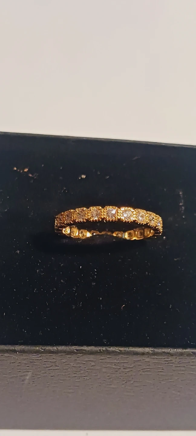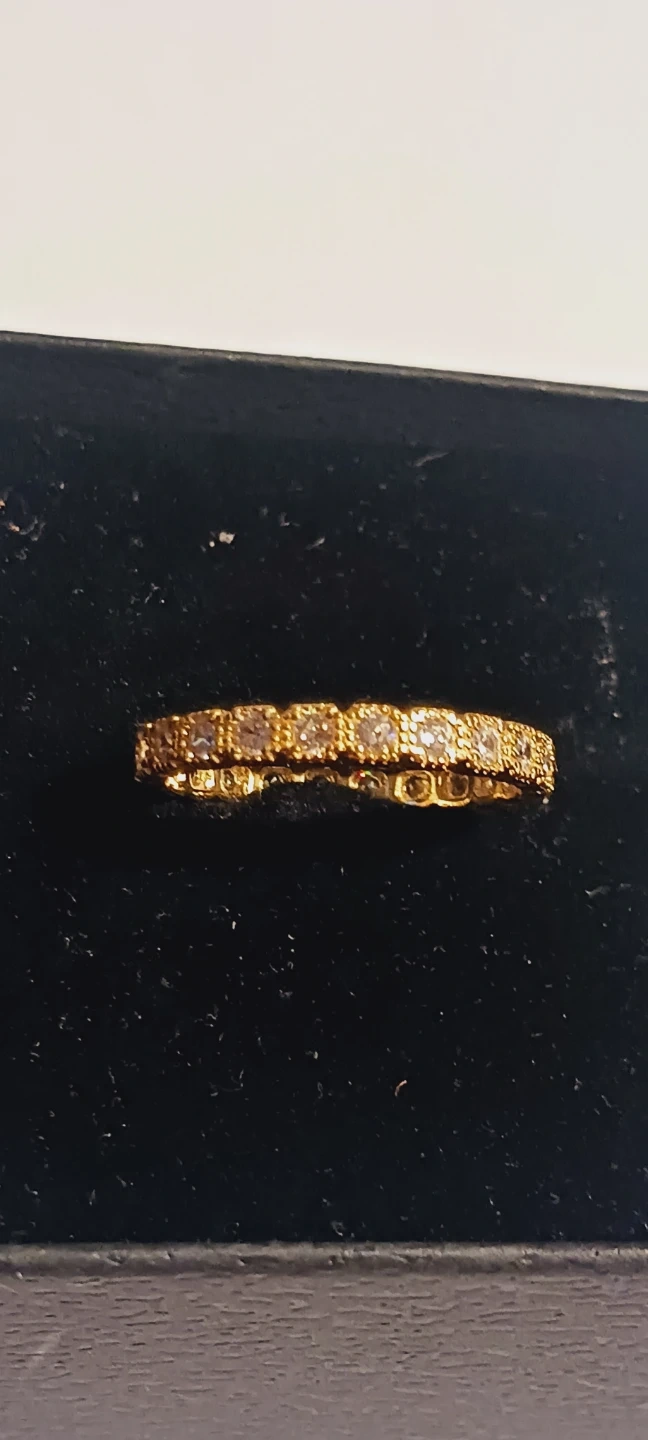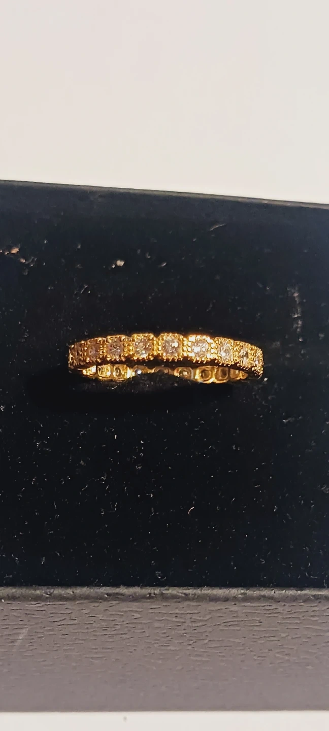 New !! Gold Overlay Sterling Silver 925 Stamped Eternity Band Ring with Clear Stones All Around. It's a delicate ring that adds a touch of sparkle. It can be worn alone or stacked with other rings. New !! Size 9. ALL MY PRICES ARE NEGOTIABLE !!