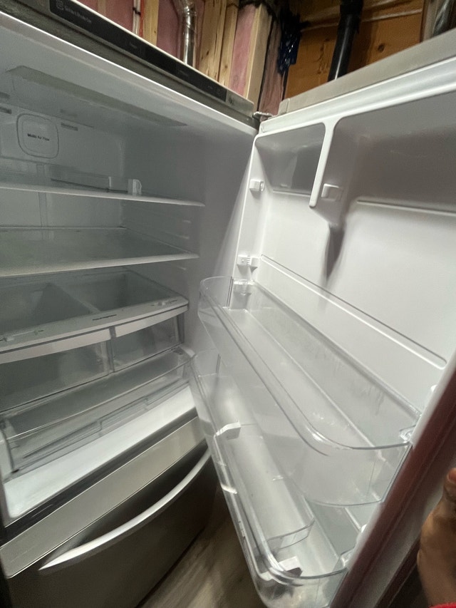 I'm selling a used LG refrigerator in good working condition. It's a spacious and reliable appliance that's ready to keep your food fresh. Brand: LG, Type: Bottom Freezer Refrigerator. If the ad is up, it's available!
