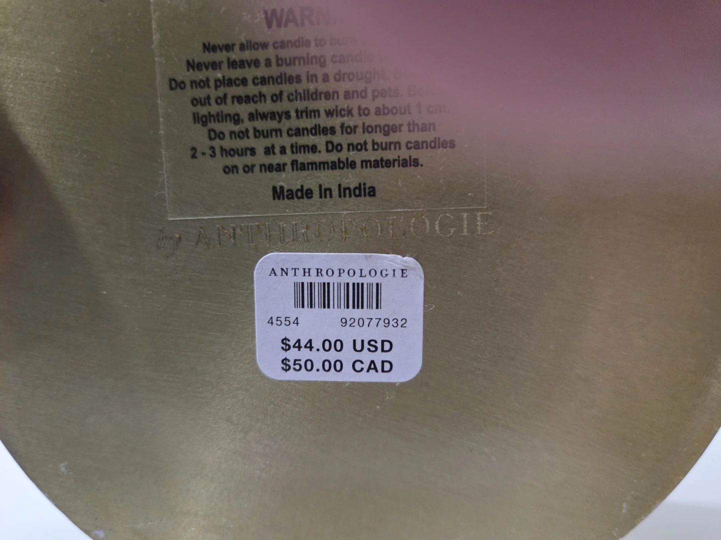 A set of two elegant gold candle holders from Anthropologie. Made in India, these stylish pieces add a touch of sophistication to any space. They're perfect for displaying on a mantelpiece or dining table.