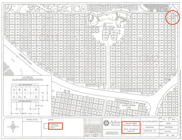 Two traditional cemetery plots for sale in Valley View Cemetery, Surrey, in the Garden of the Last Supper. Each single-depth space is suitable for a full traditional burial with one casket, plus capacity for up to two additional cremation internments, making it ideal for companions. The plots are located on the edge of the garden near the cemetery road, offering easy access. Ideal for those planning ahead for side-by-side plots in a peaceful, established cemetery in Surrey, BC. Garden: Garden of the Last Supper. Location: Section 41, Plot C1. Price: $15,000 for both plots. Each plot can accommodate: 1 casket, and up to 2 urns. For Sale By: Owner.