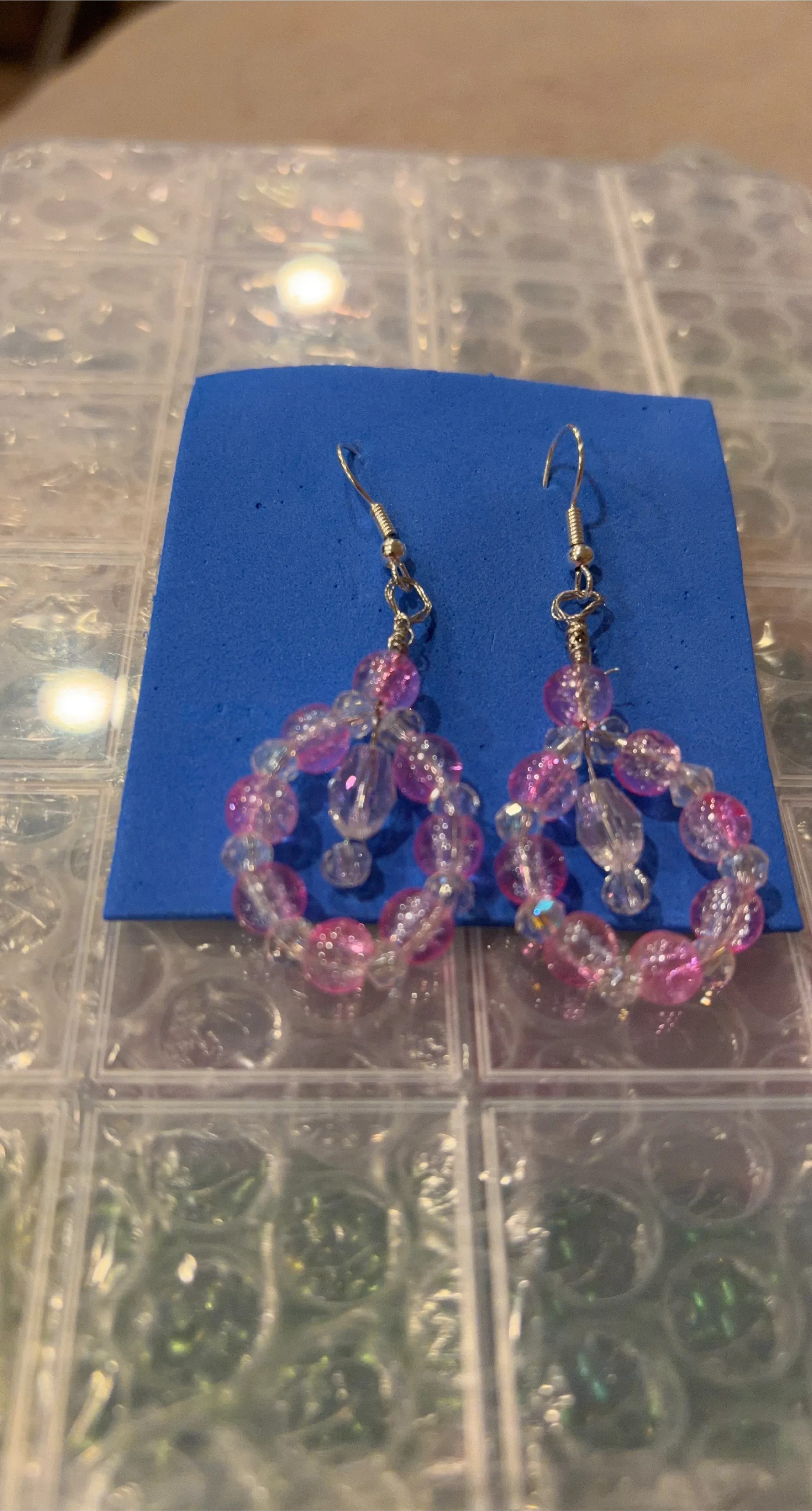 Handmade Pink and Clear Beaded Hoop Earrings