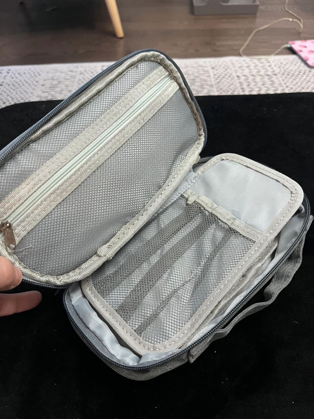 This grey pencil case offers great organization with its multiple mesh pockets and elastic straps. It's perfect for storing pens, pencils, or other small stationery items. Fabric exterior and lining.