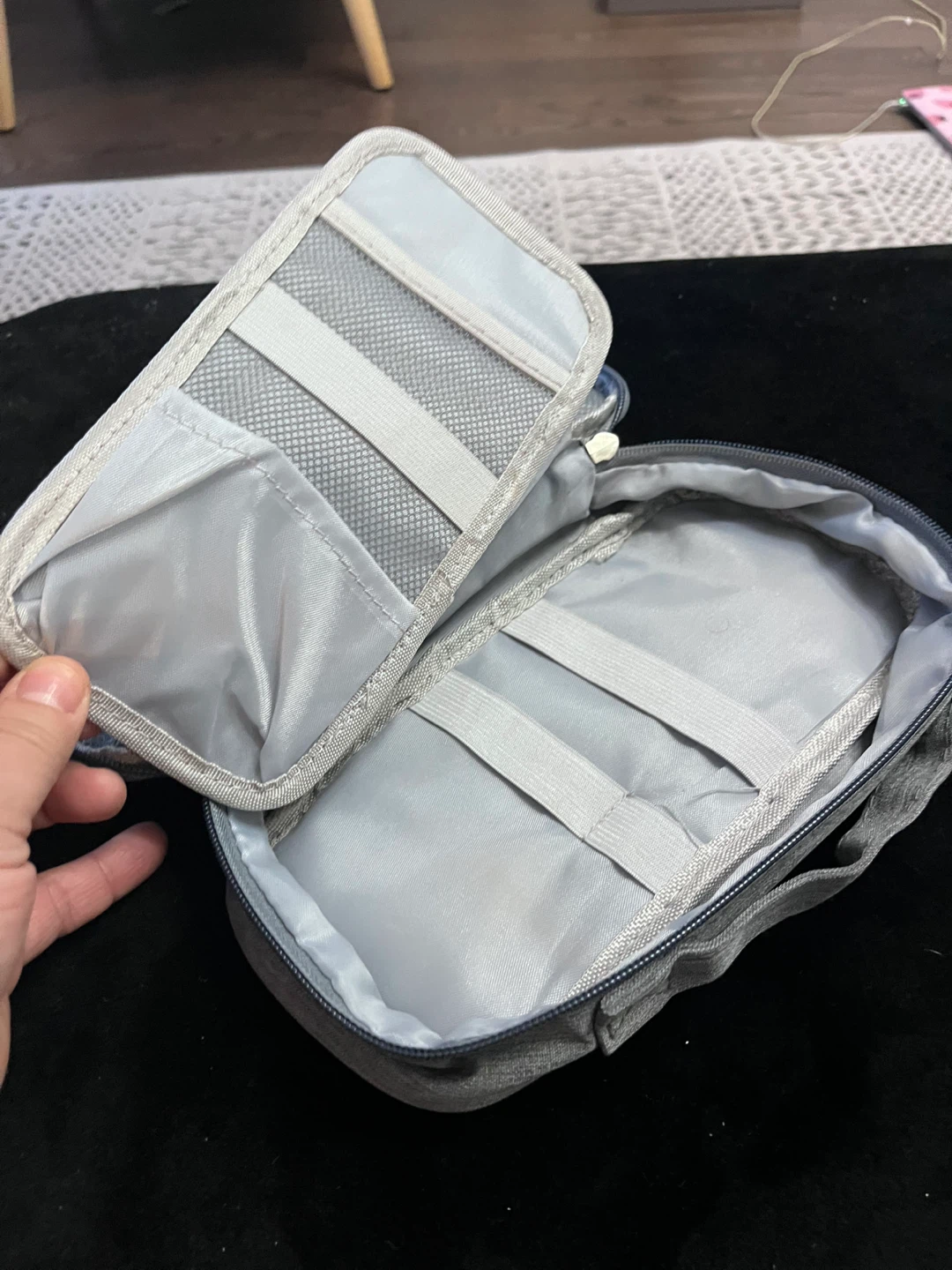 This grey pencil case offers great organization with its multiple mesh pockets and elastic straps. It's perfect for storing pens, pencils, or other small stationery items. Fabric exterior and lining.