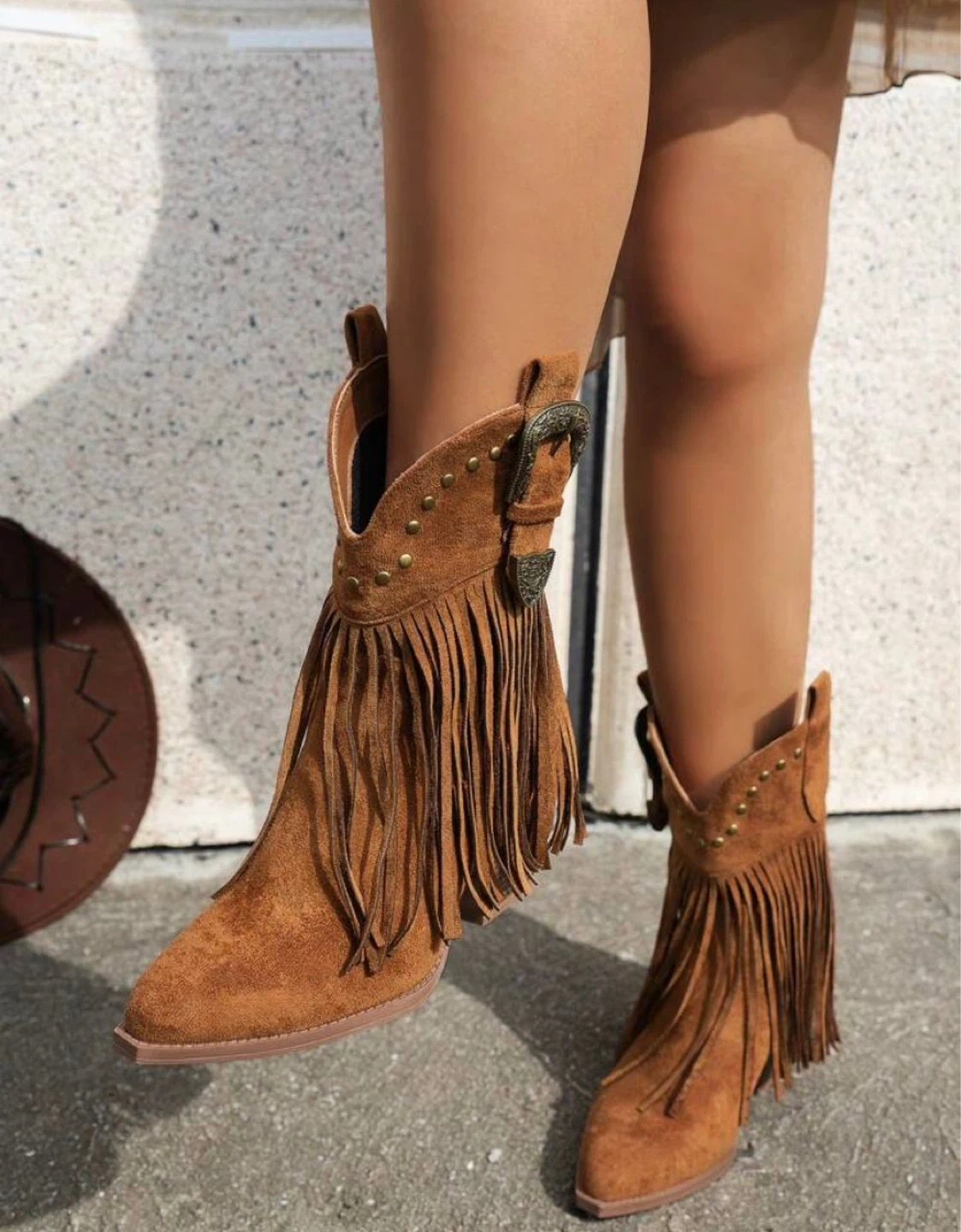 Brown Suede Fringe Ankle Boots