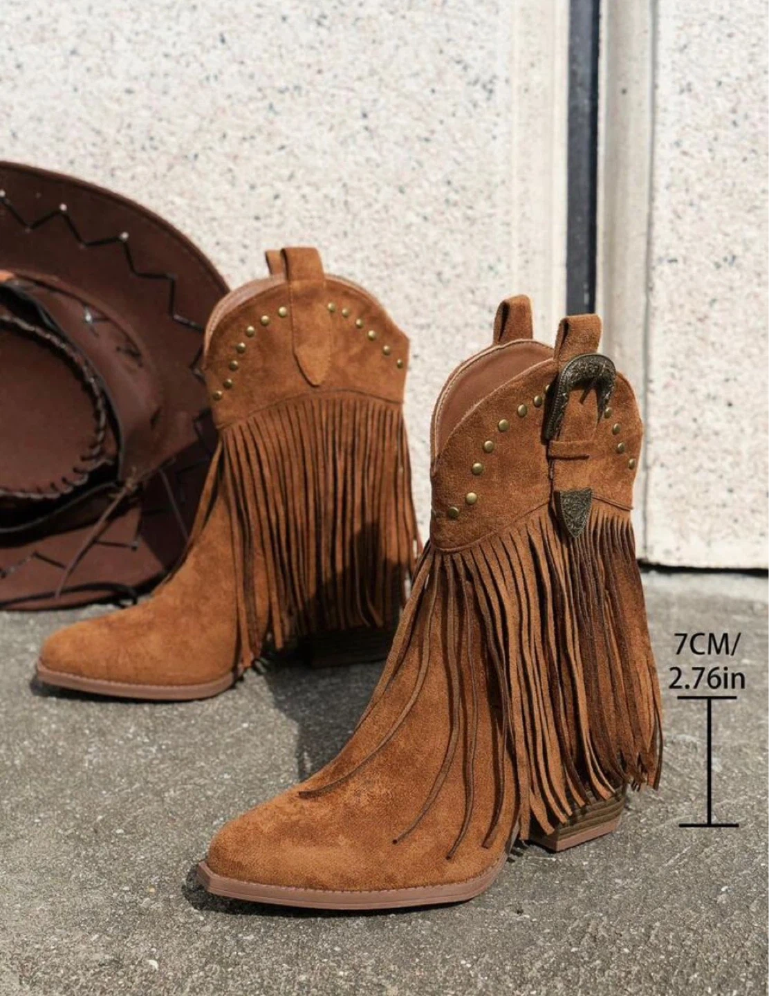 Brown Suede Fringe Ankle Boots