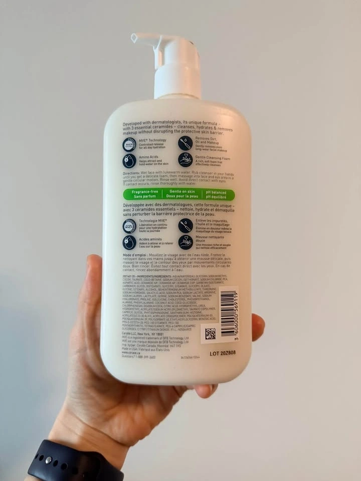 Brand new CeraVe Hydrating Cream-to-Foam Cleanser. Big 562 mL bottle. Great for normal to dry skin. Removes makeup. Fragrance-free and pH balanced. Moving out of the country, and not planning to take it with me.