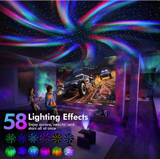 5-in-1 galaxy projector with dual-lens and 58 light effects