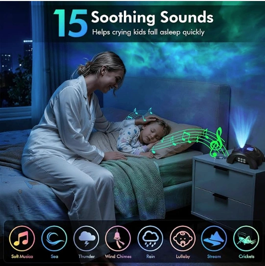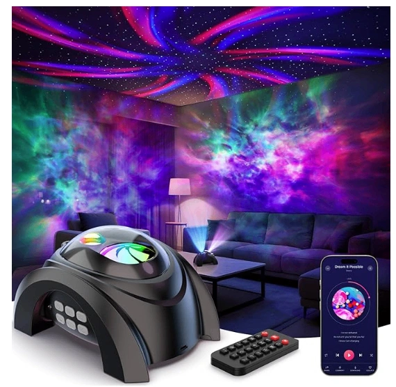 Projects galaxy and aurora lights onto walls and ceiling