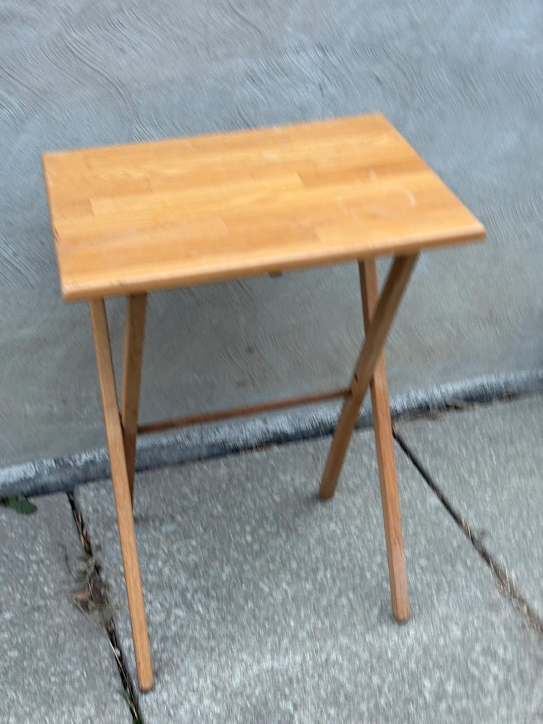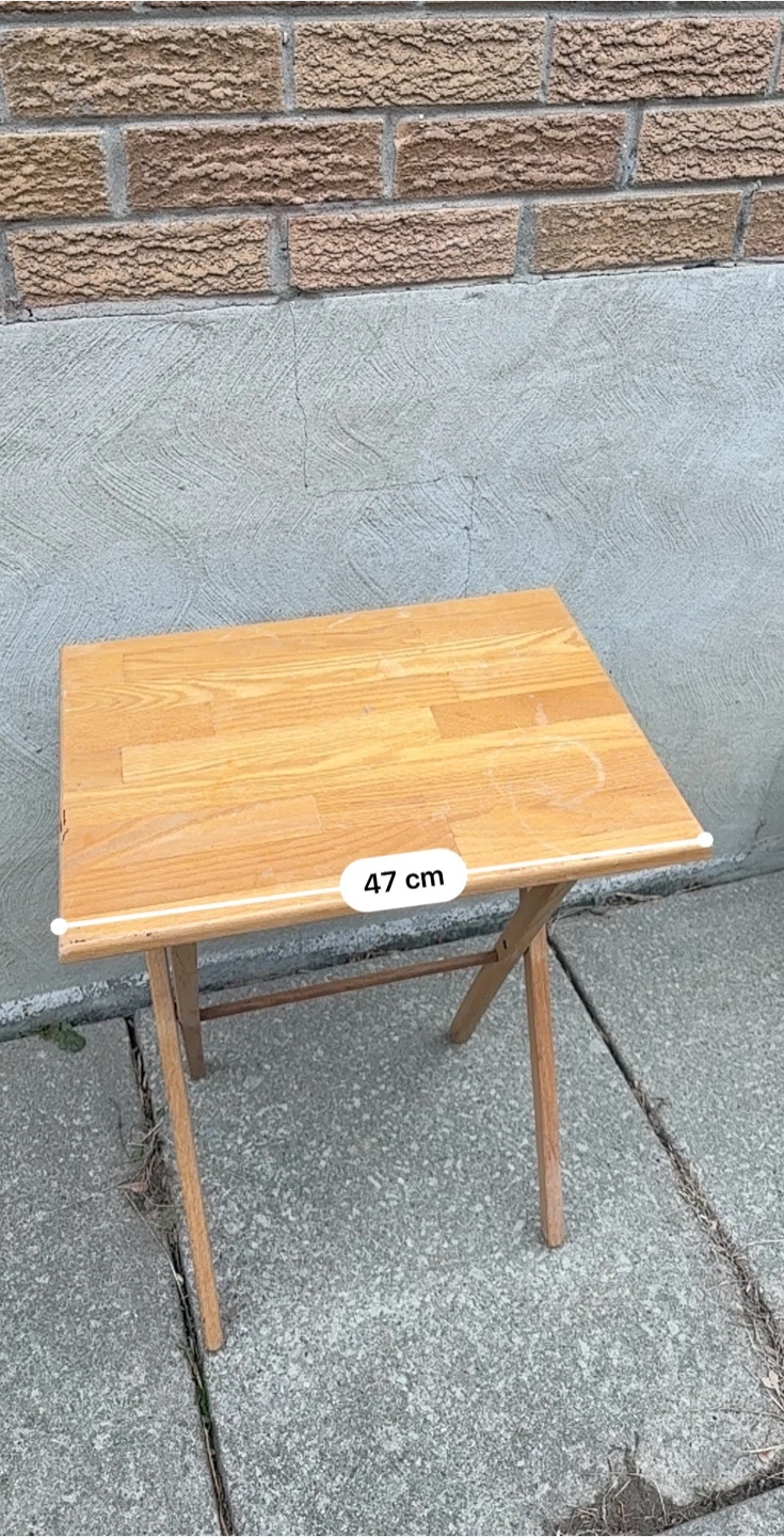 Buy & SellWooden Folding TableWooden Folding Table$25A handy wooden folding table. It's 47 cm by 37 cm and 67 cm tall. Folds flat for easy storage!ConditionGoodWHERE TO MEETCheck LocationView MapSELLERLunaWestminster63170 reviews0 chats·0 favorites·19 viewsSEND CHAT TO SELLERHi Luna! I’m interested in your listing.Hi Luna! I’m interested in your listing.Get the Karrot app to chatSign In to chat